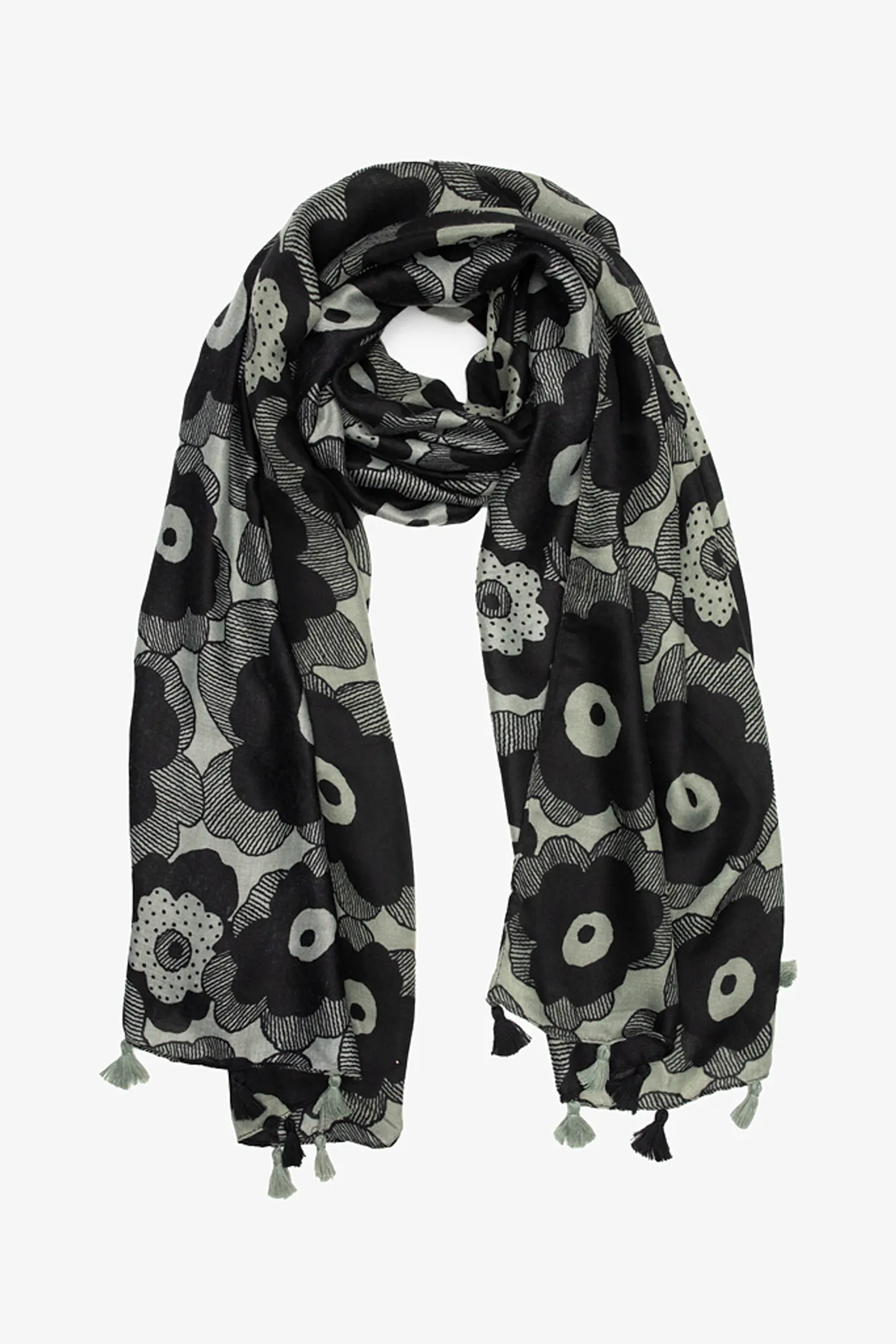 Art meets elegance in the Abstract Dahlia Scarf, featuring a mix of hand drawn florals and patterns, this scarf blends contemporary design with timeless femininity.