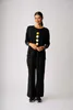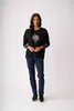 The base of the top is black with an eye-catching print.