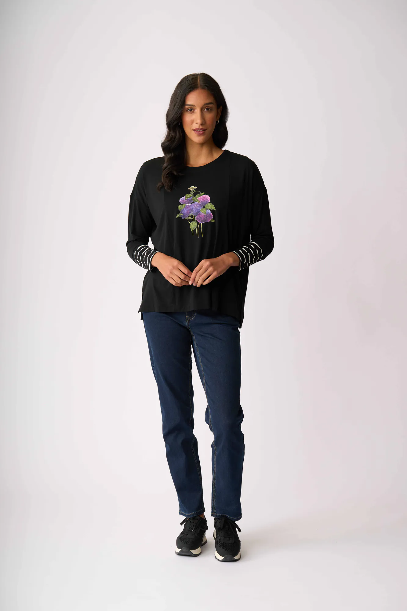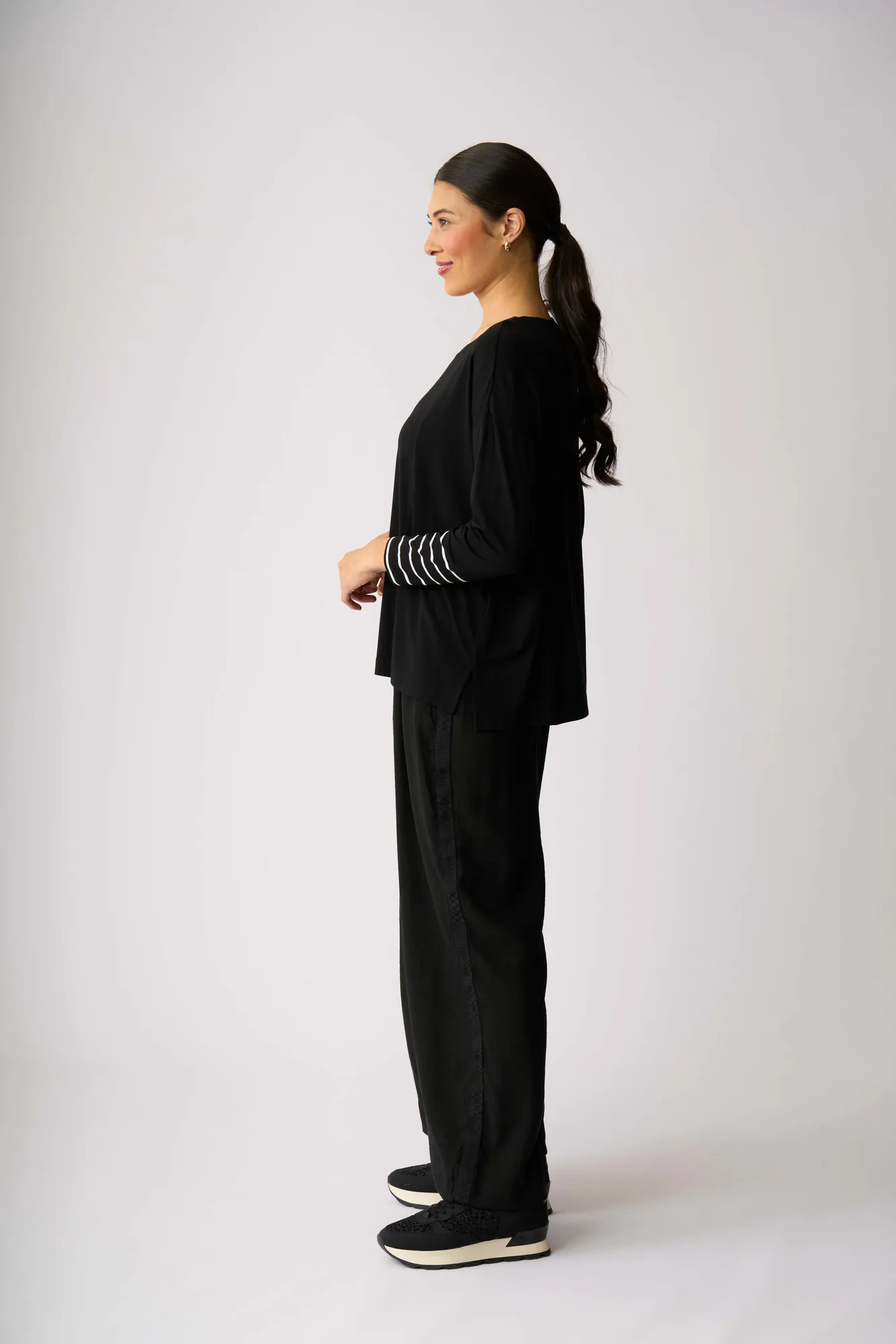 The sleeves have a stripe detail to add a pop of interest