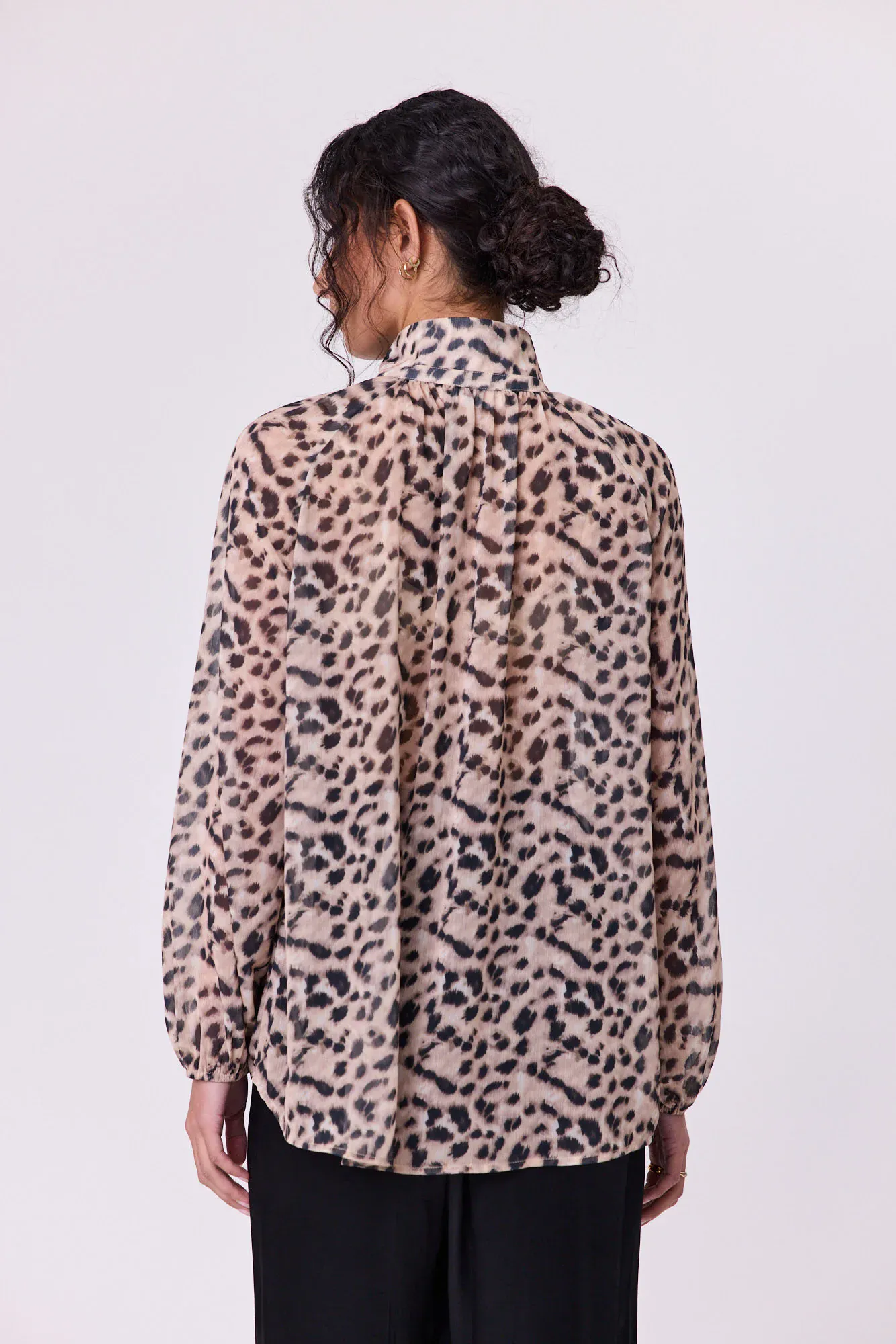 Designed to highlight the animal print, the delicate detailing enhances the overall design, keeping the look sophisticated and wearable. Ideal for pairing with tailored pants or skirts, the Bowie Blouse is a standout women’s statement blouse.