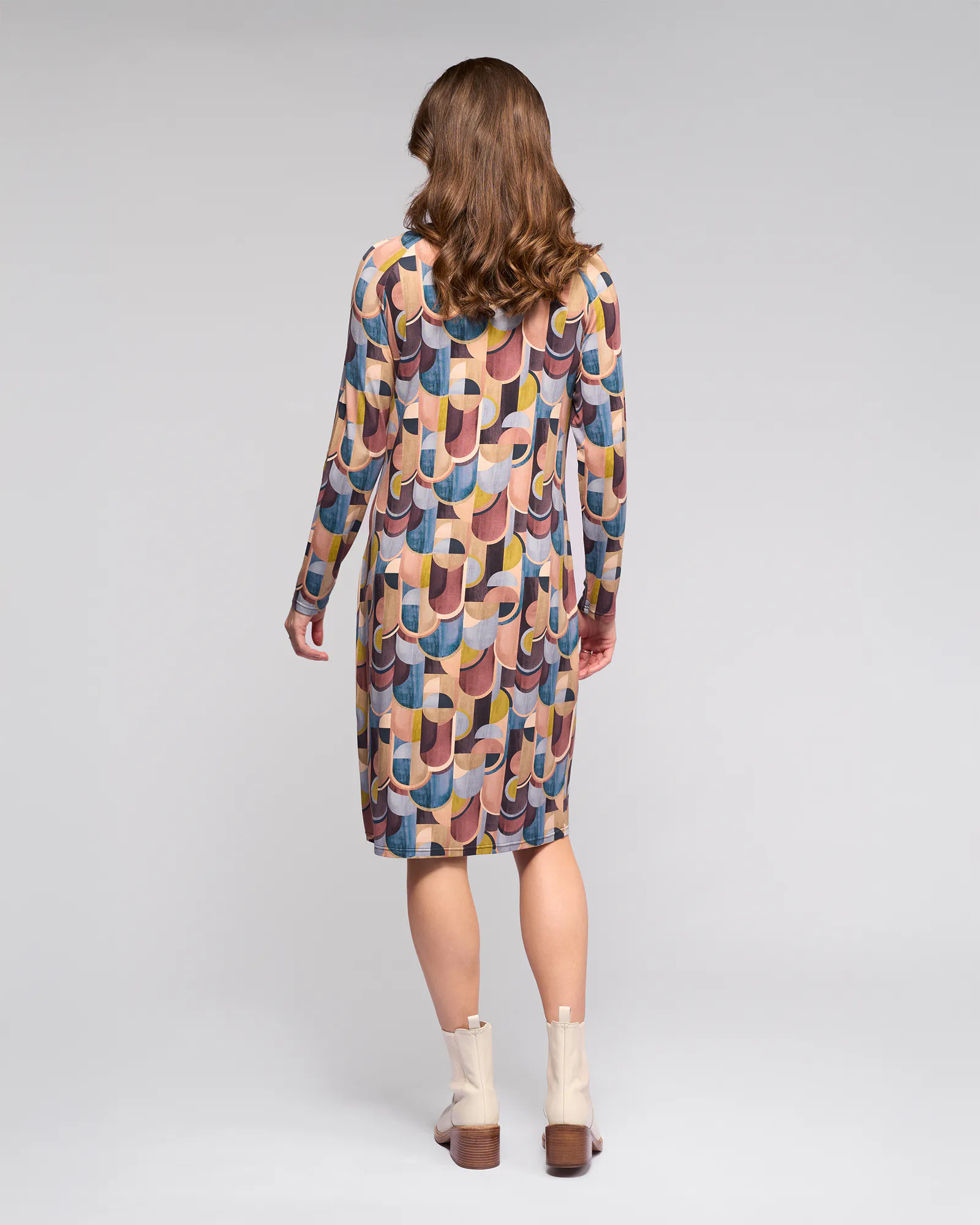 Simple midi-length dress in our Revolve print, made from a soft, lightweight rayon jersey with stretch. Designed with long sleeves and a round neckline, this easy style offers a comfortable, fluid fit for everyday wear.