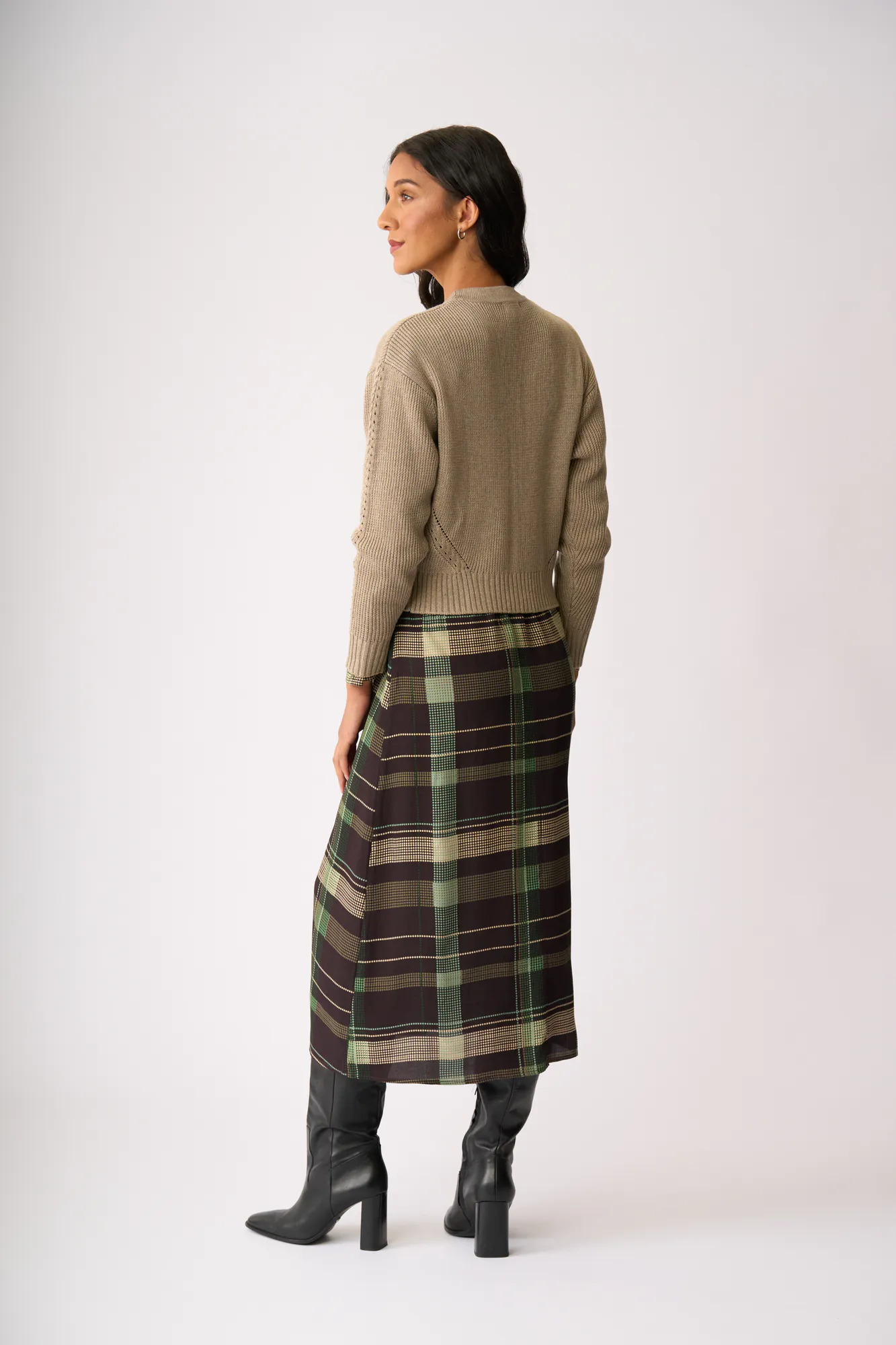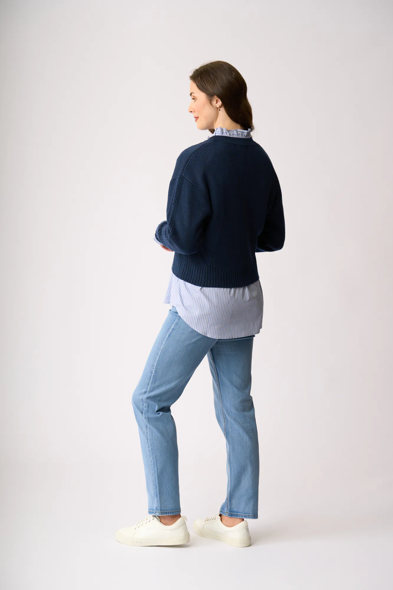 Body and sleeves feature fisherman type 1x1 rib with pointelle and cable detail