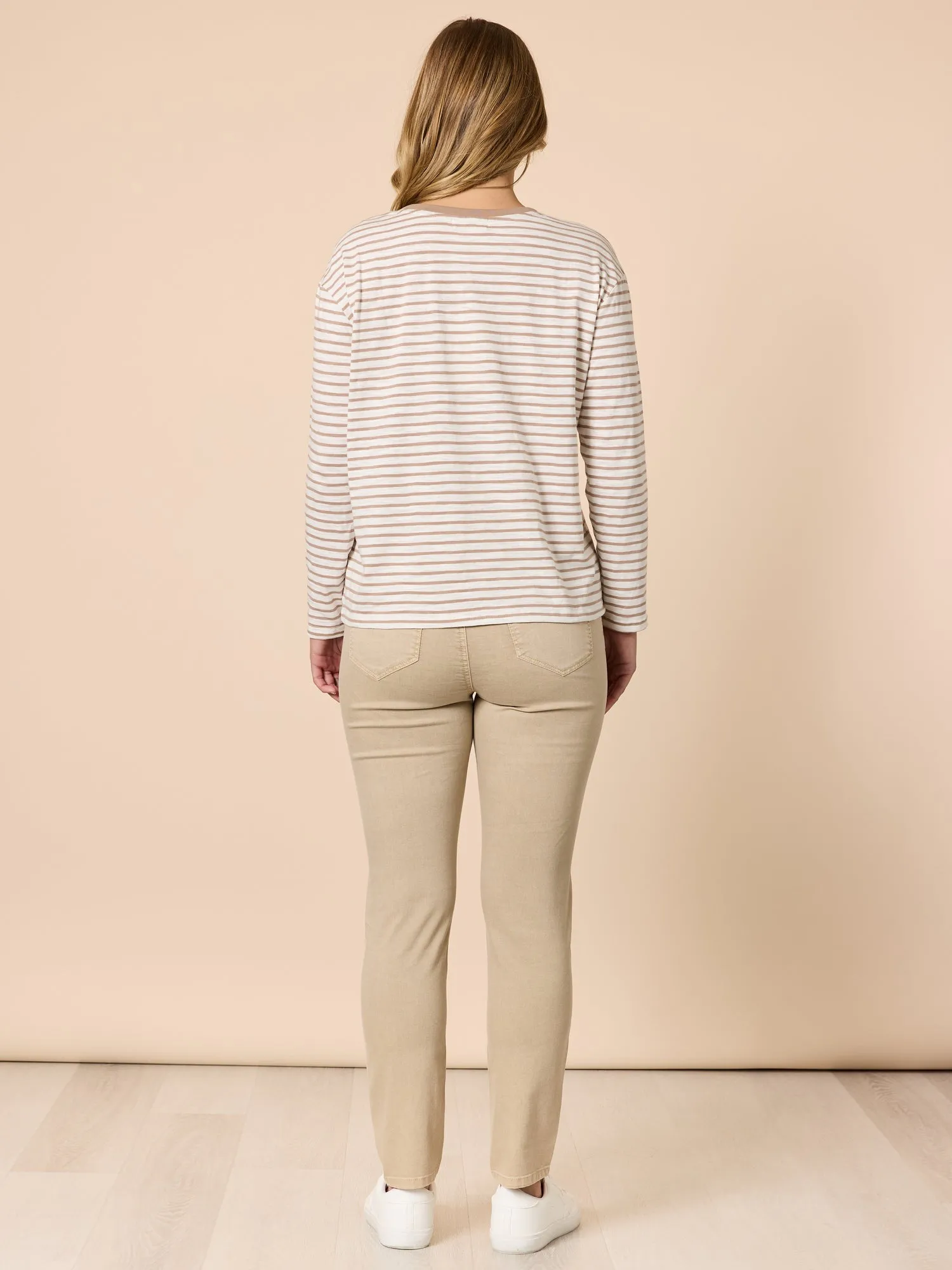 Crafted from a soft, easy going fabric, this striped long-sleeve tee brings a touch of whimsy to your wardrobe with its delightful dachshund graphic, complete with scarf and sunglasses for the ultimate Parisian-inspired flair.