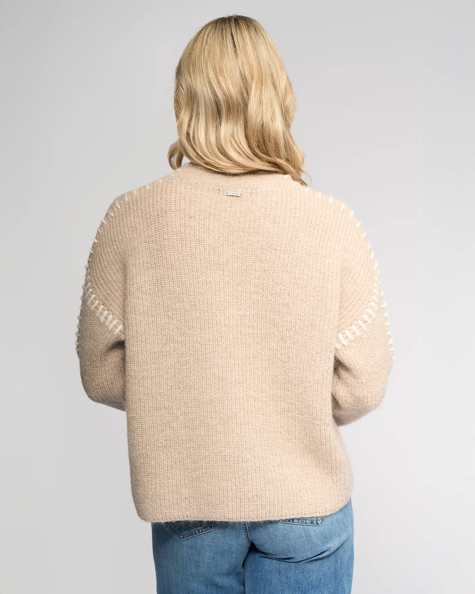 • Oat colour with oversized contrast white stitching