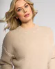 Relaxed-fit knit sweater in Oat with contrast Winter White stitching features. Made from a soft blend including mohair and wool, it features drop shoulder long sleeves and a round neckline.