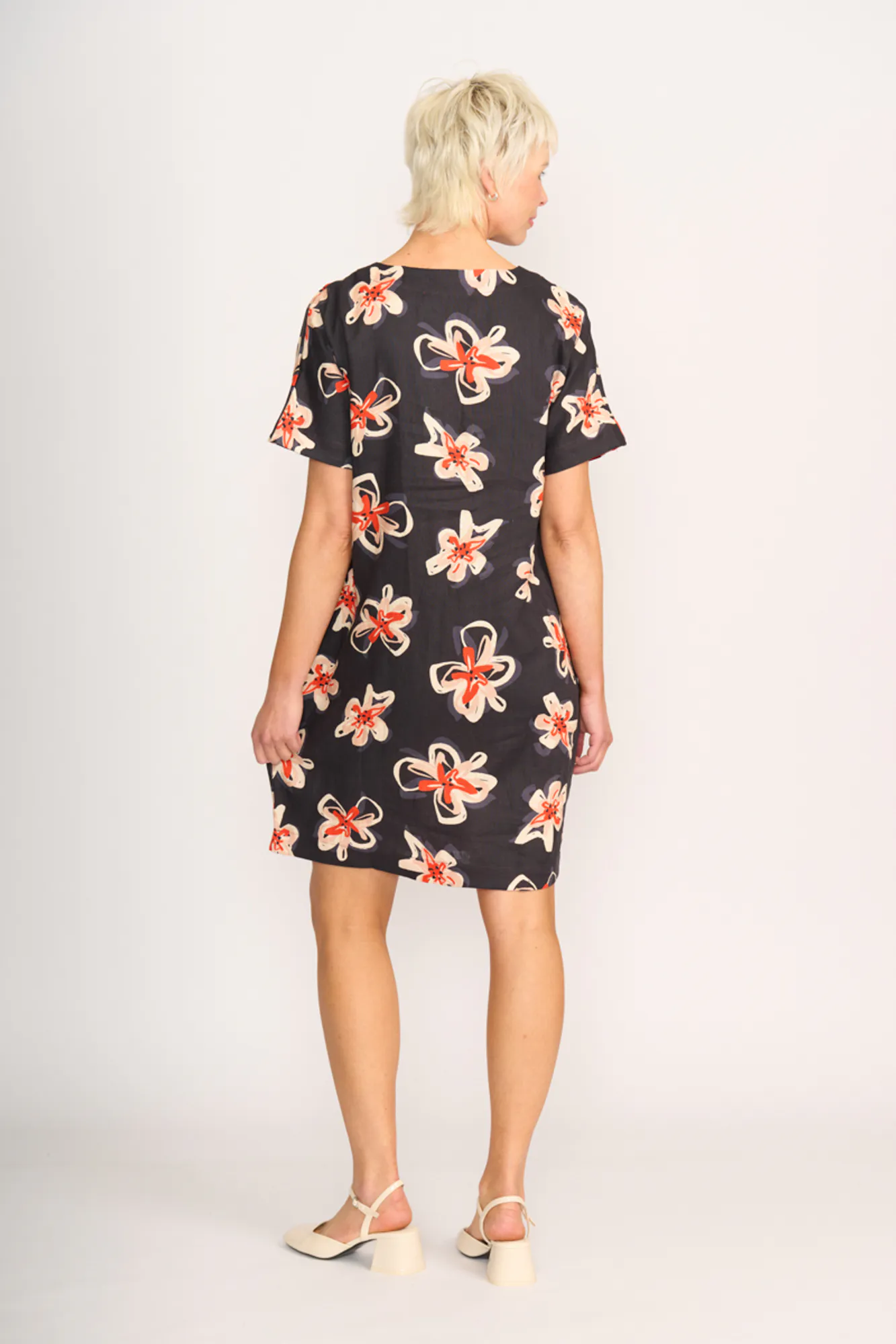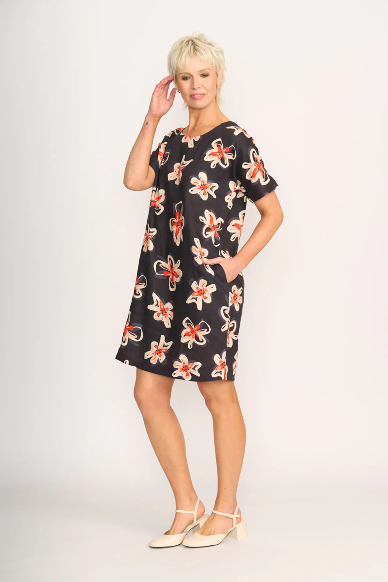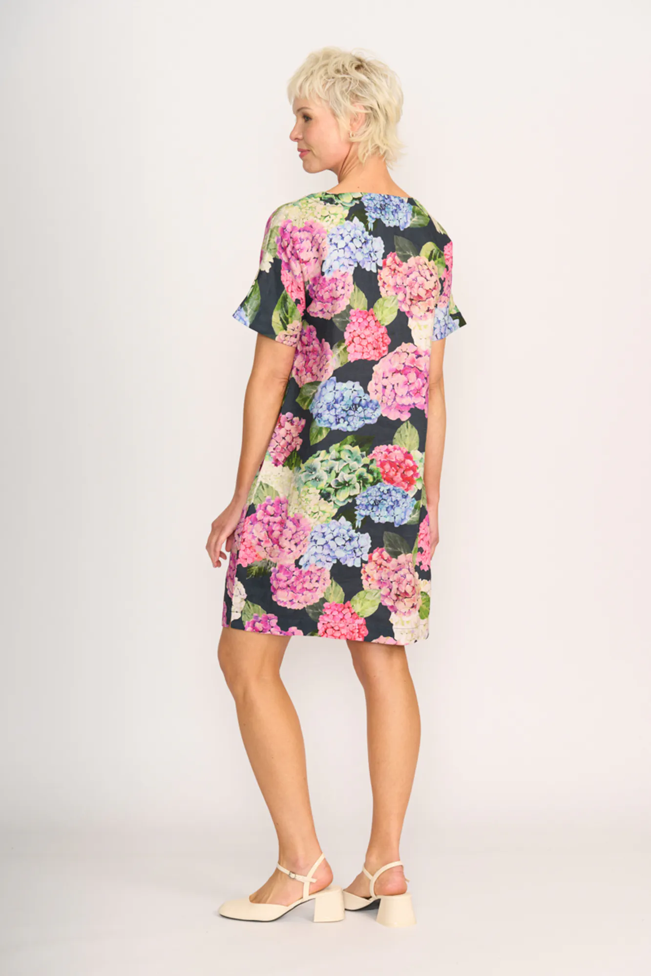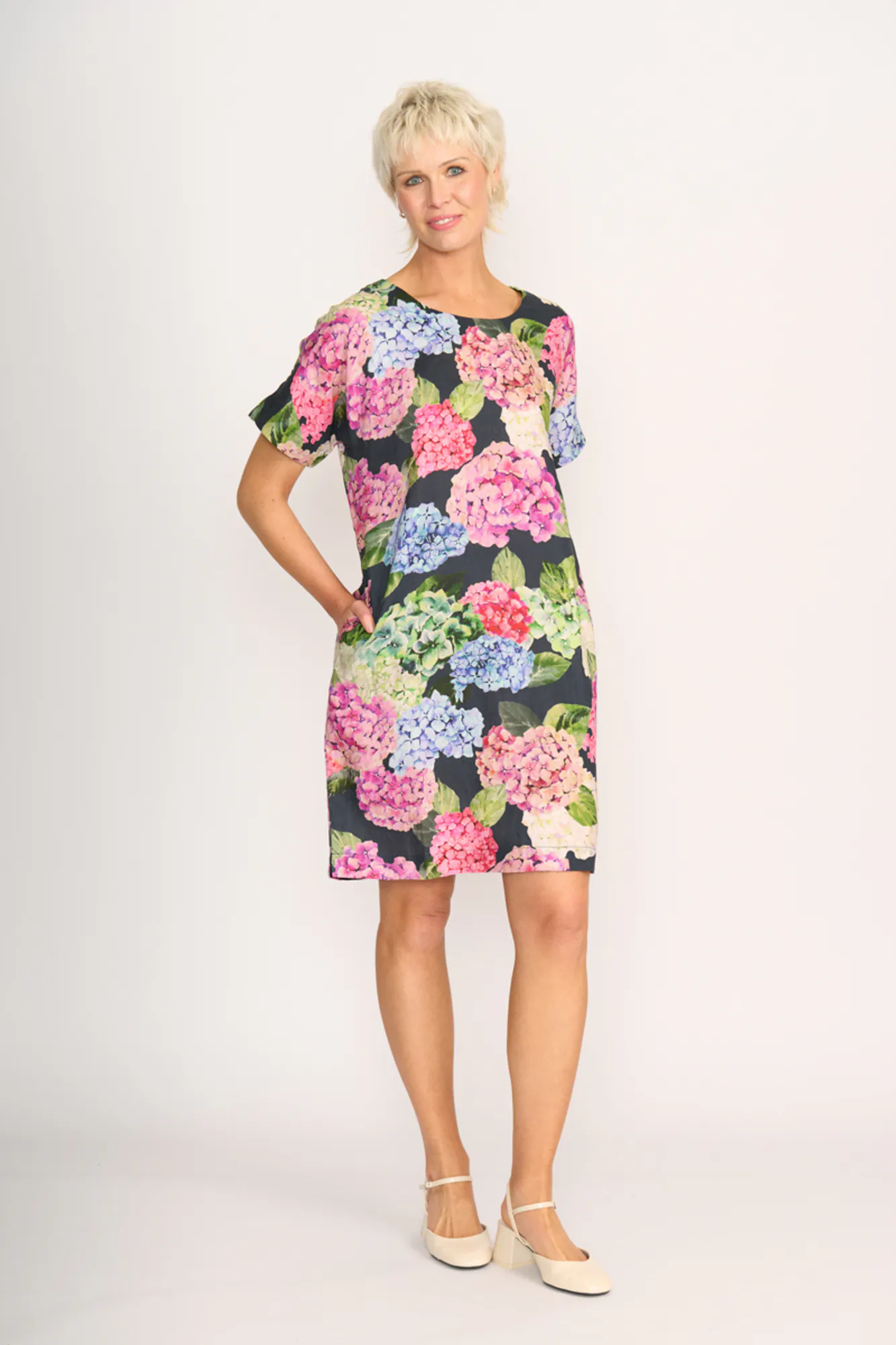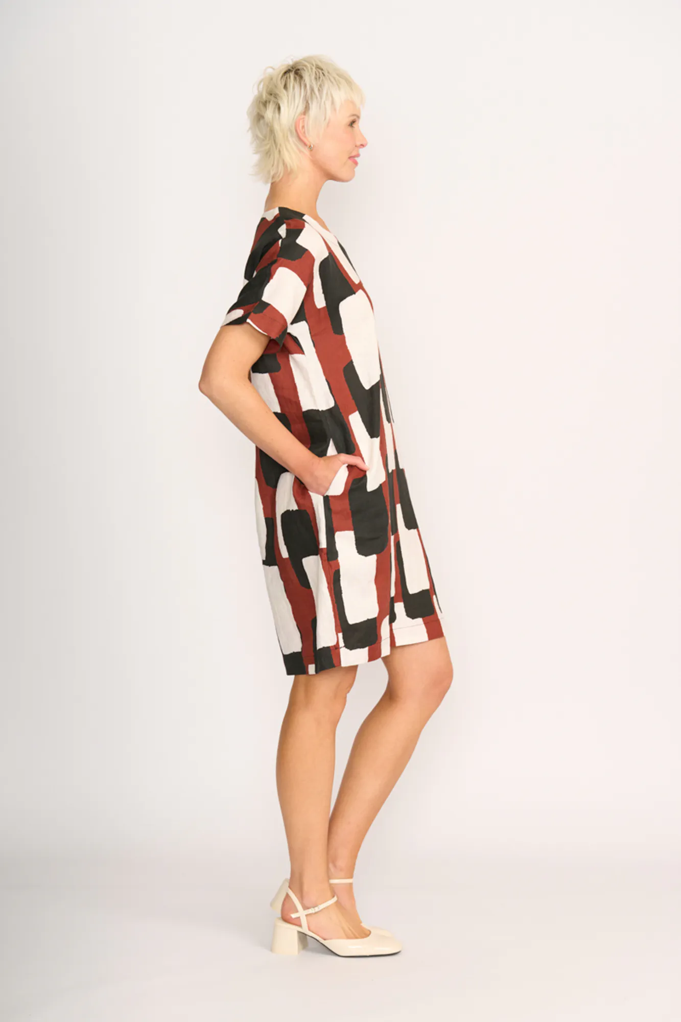 Shift dress with internal contrast neck facing for fun on the hanger. Relxed fit, features inseam pockets. Length from shoulder to hem is approx. 100cm (size 12)