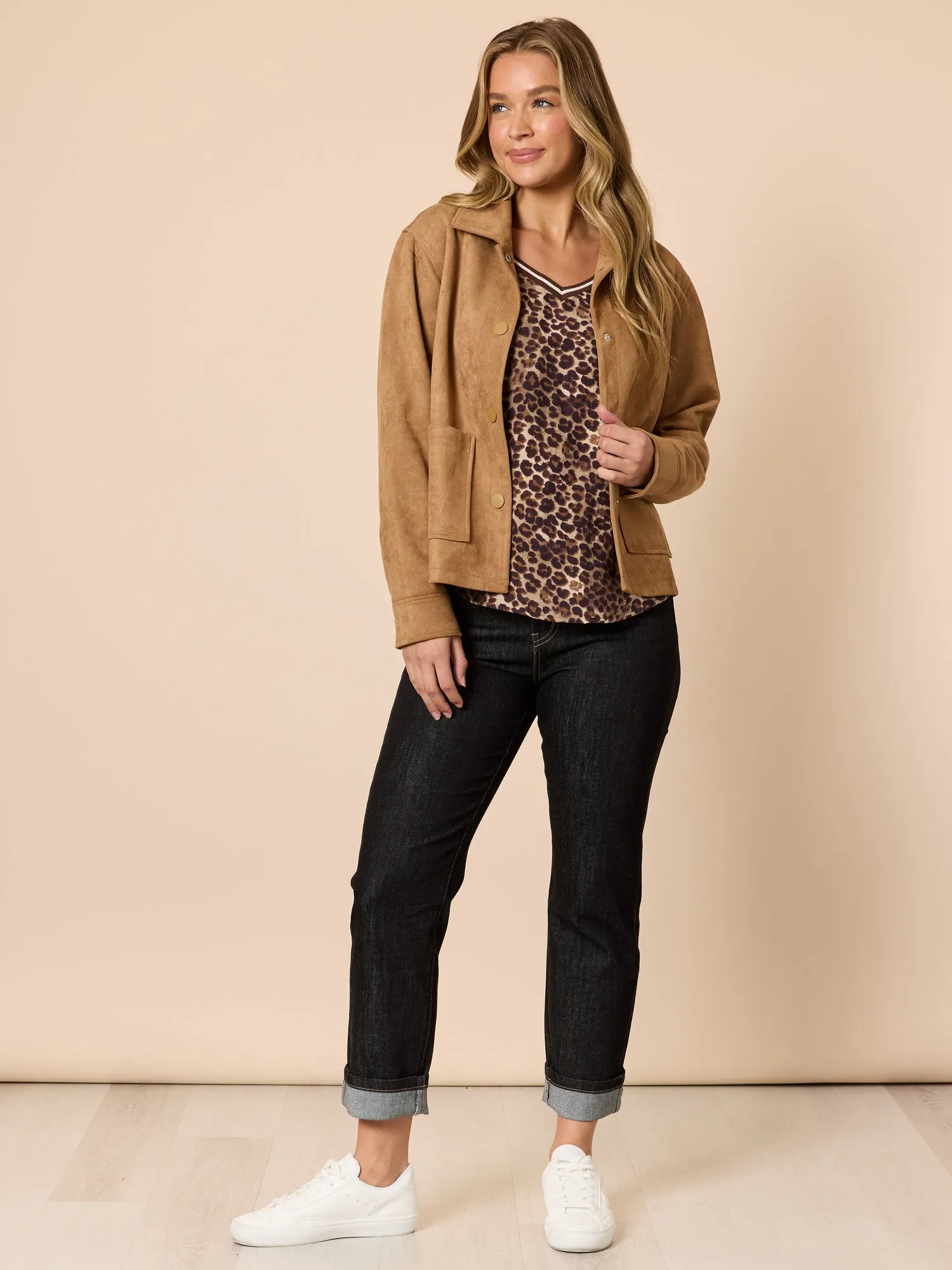 Effortlessly stylish and endlessly versatile, the Downtown Faux Suede Jacket is your new go-to layer for chic everyday wear.
