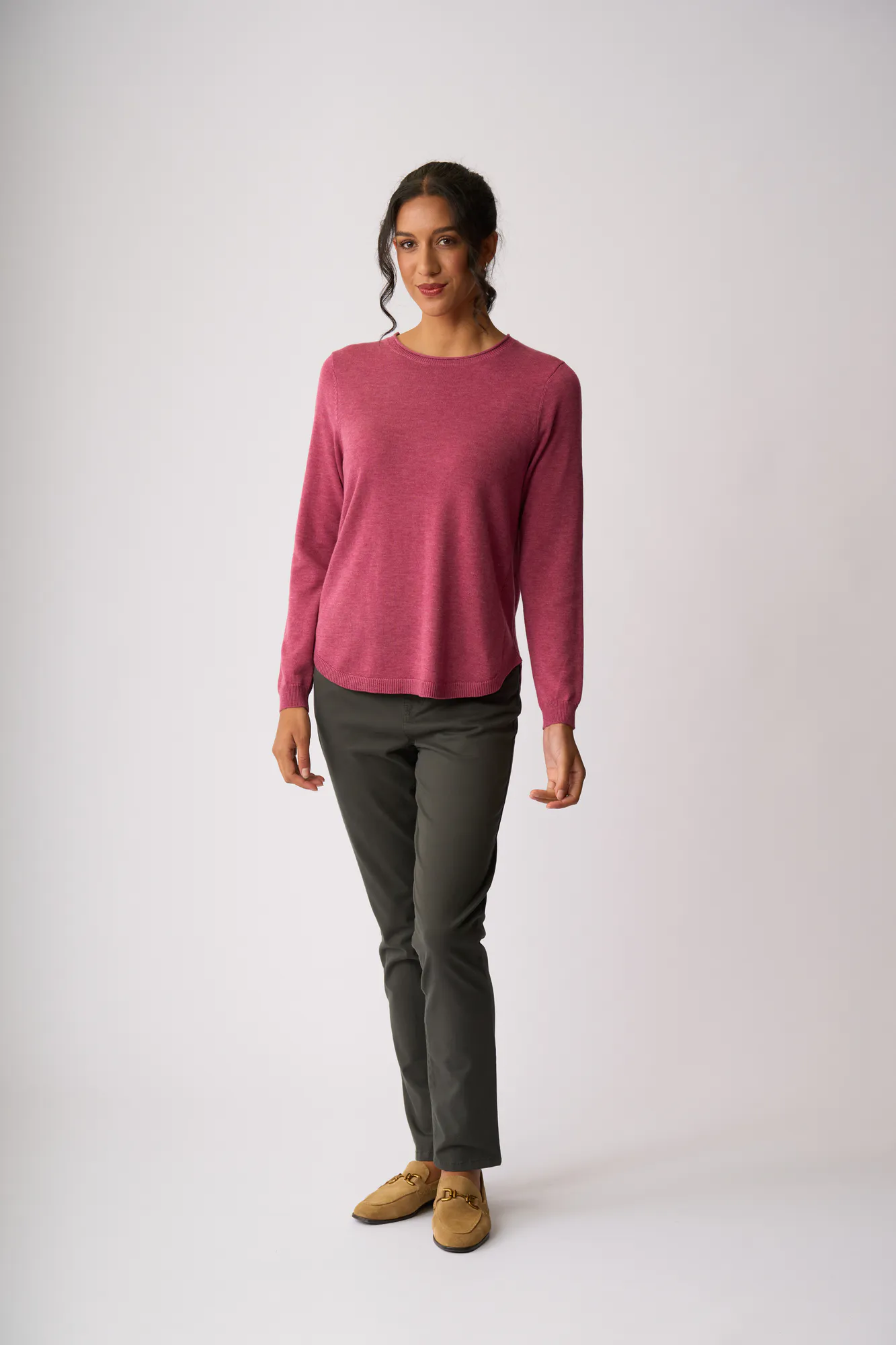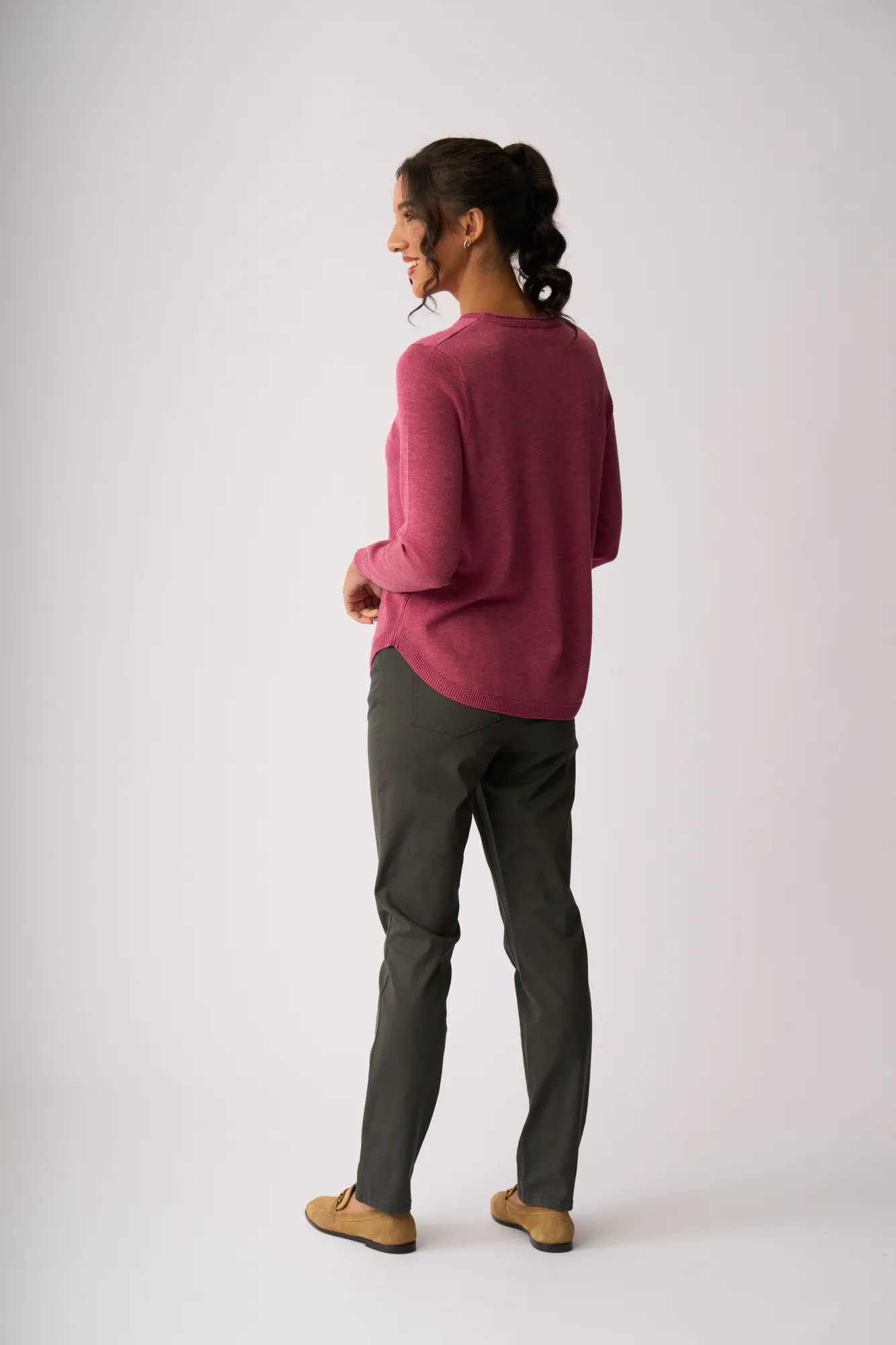 Scoop neck and scoop hem sweater