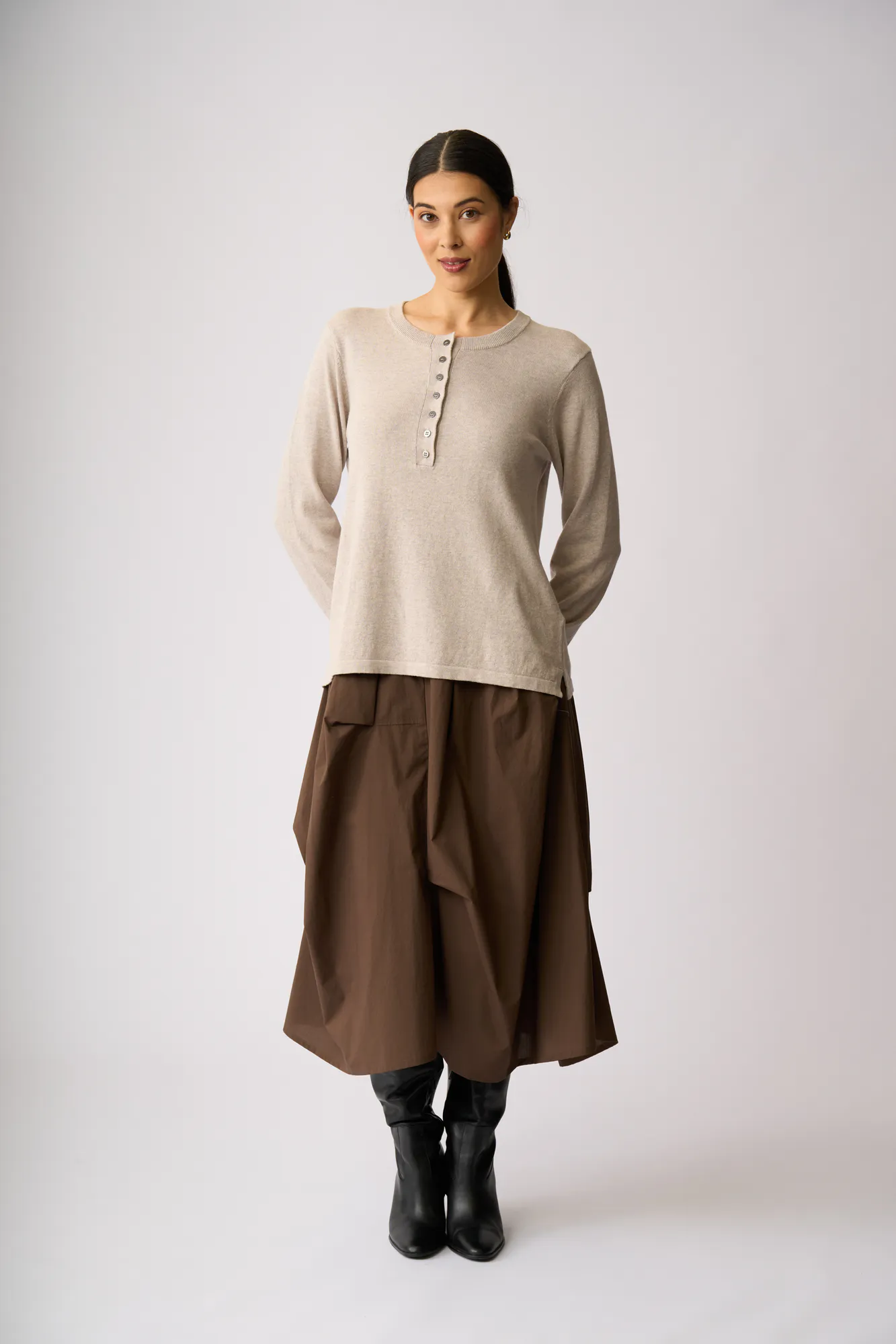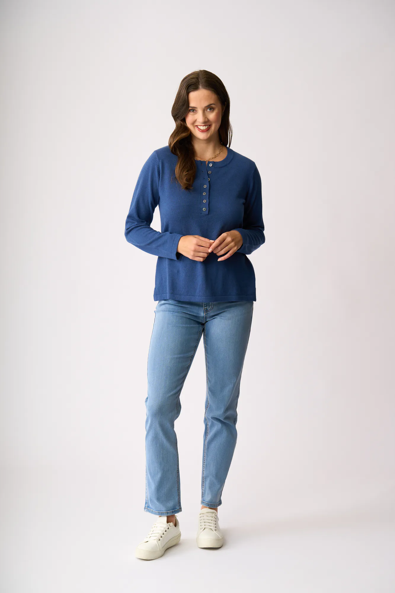 Contrasting shoulder panels and front placket with 7 functional buttons