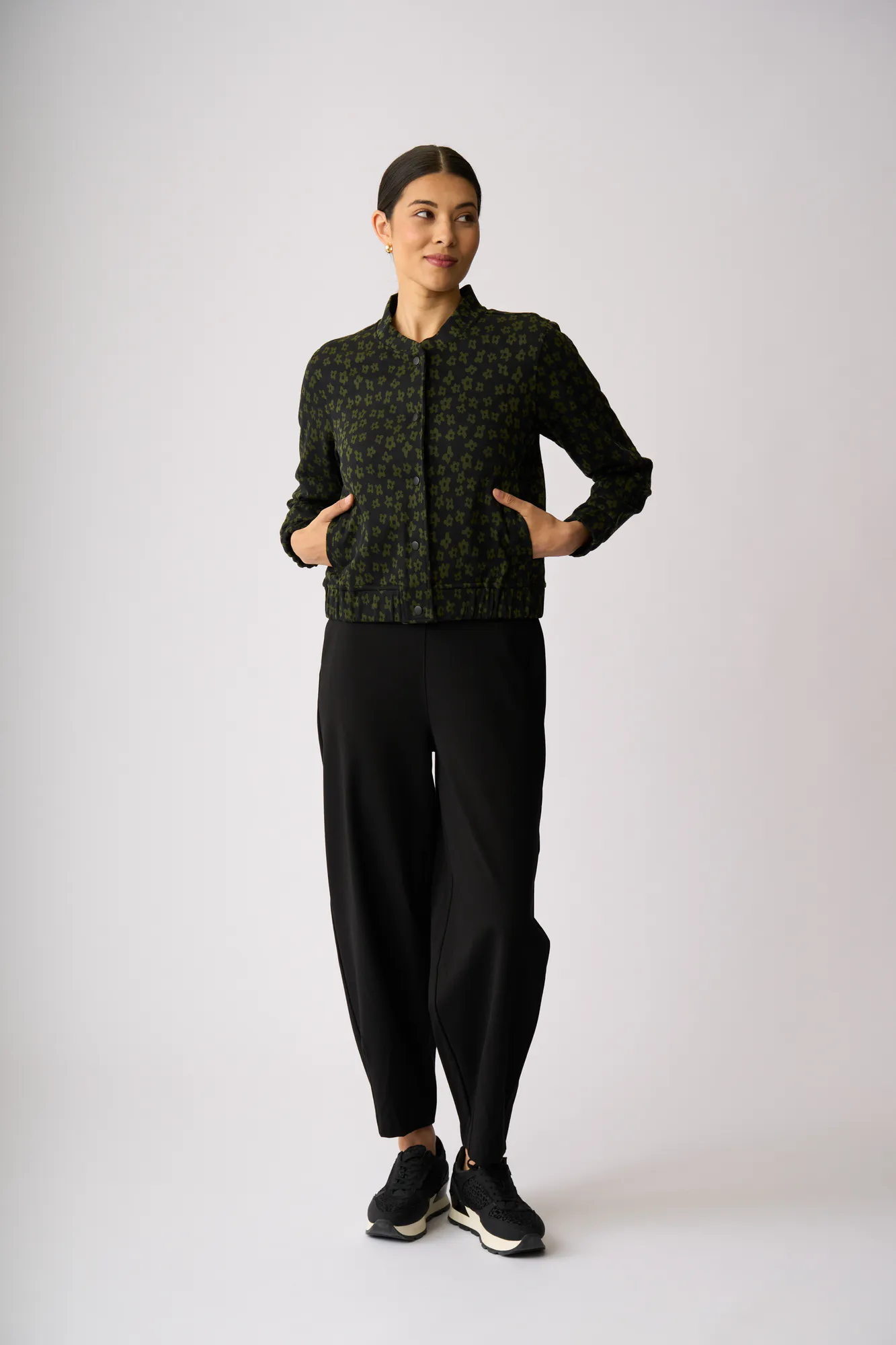 With a dome button closure and bomber style fit