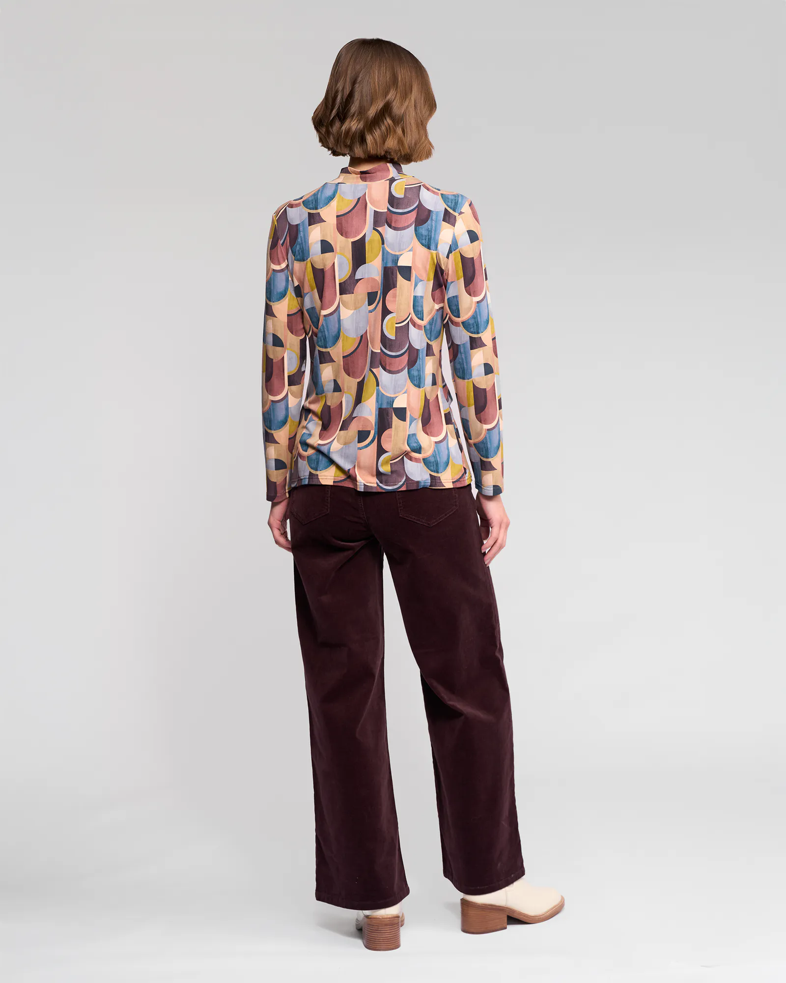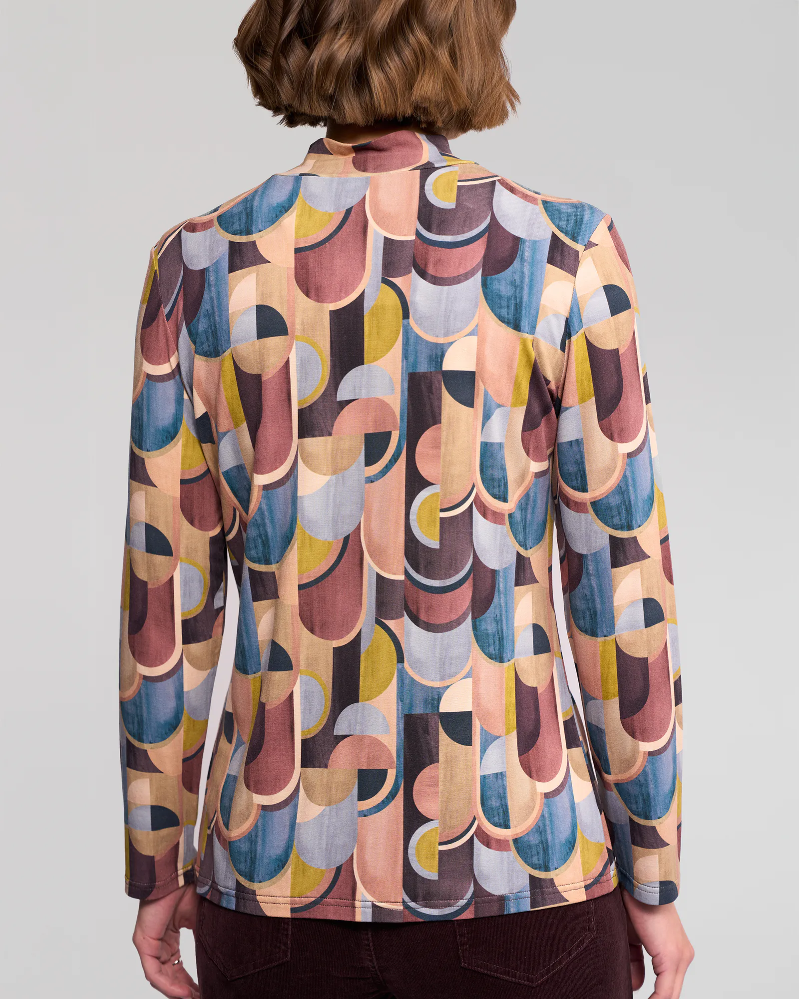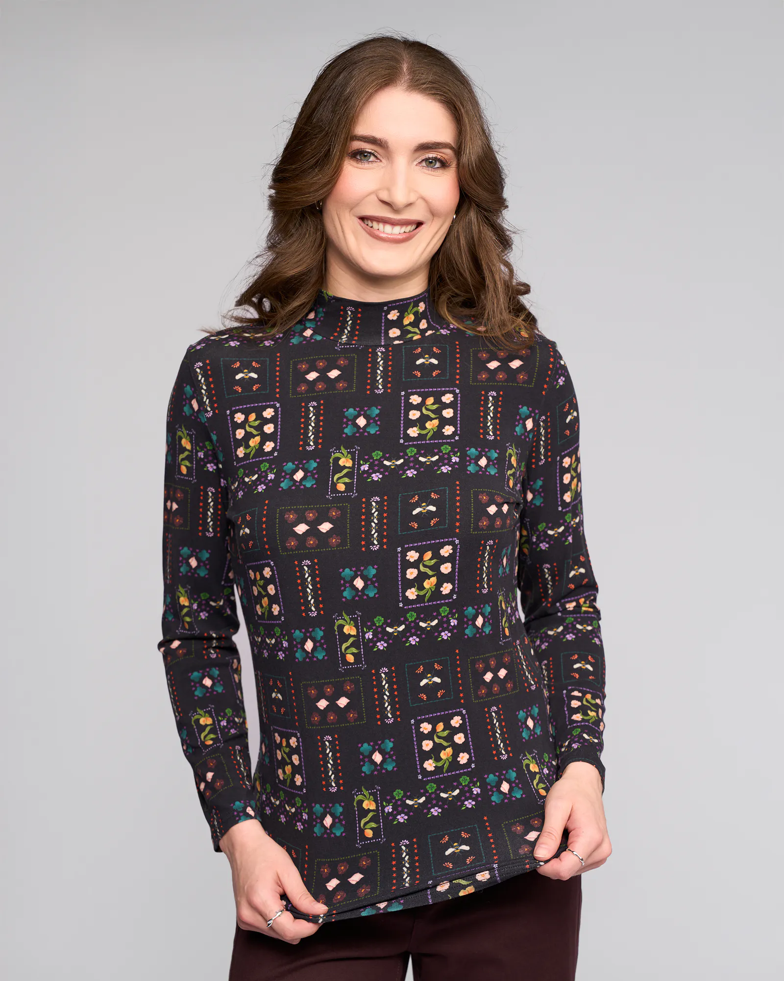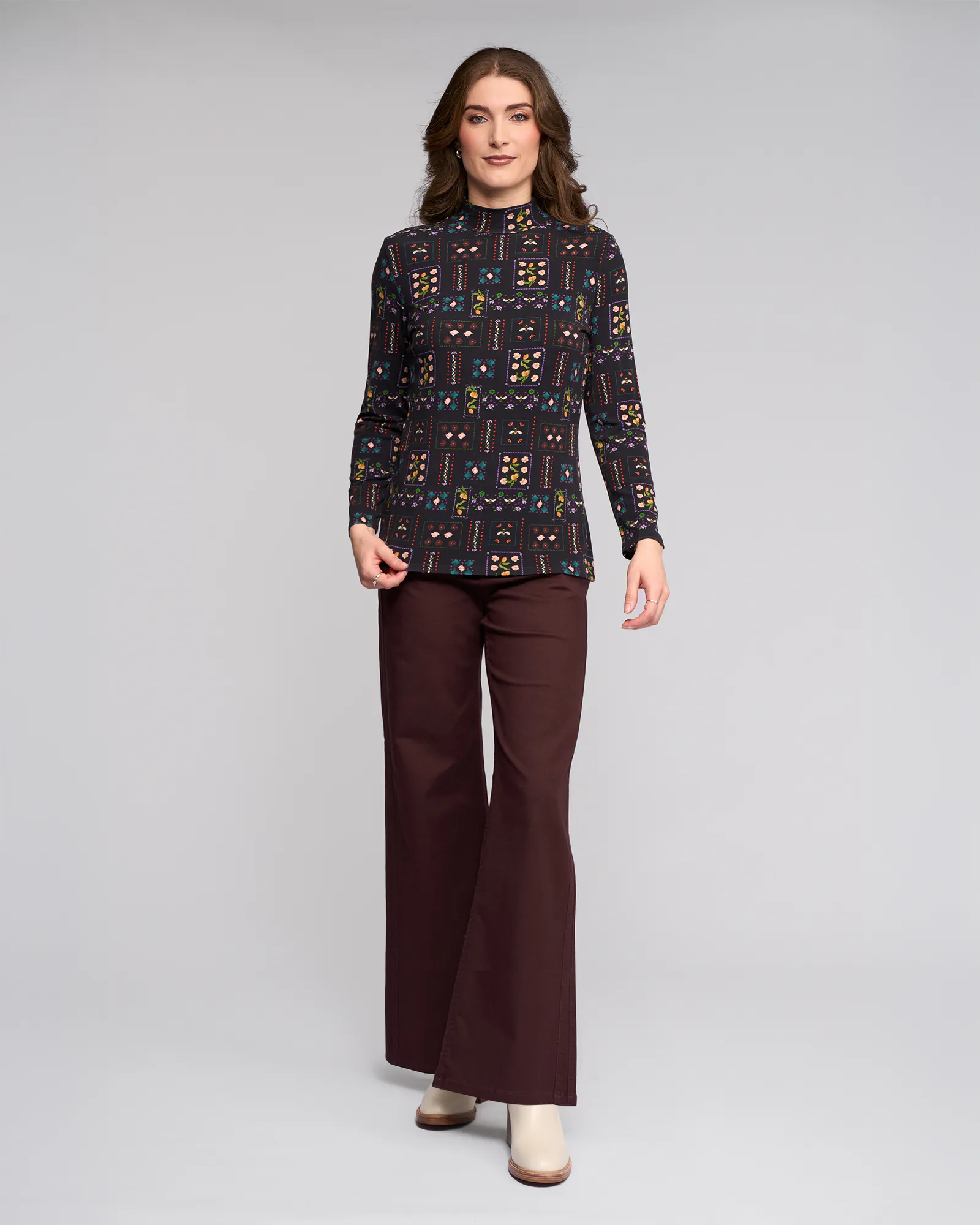 Long-sleeve high-neck top in our Haven print — a dark inky base layered with small-scale geometric and floral elements in a multi-colour palette. Cut in a slim fit from soft stretch jersey, this style works beautifully as a standalone piece or layered under jackets and knits.