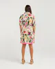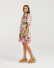 A floral shirt dress with embroidered sleeves and a bold black base. Features a collared neckline, tie waist and scallop hem for a polished yet playful finish.