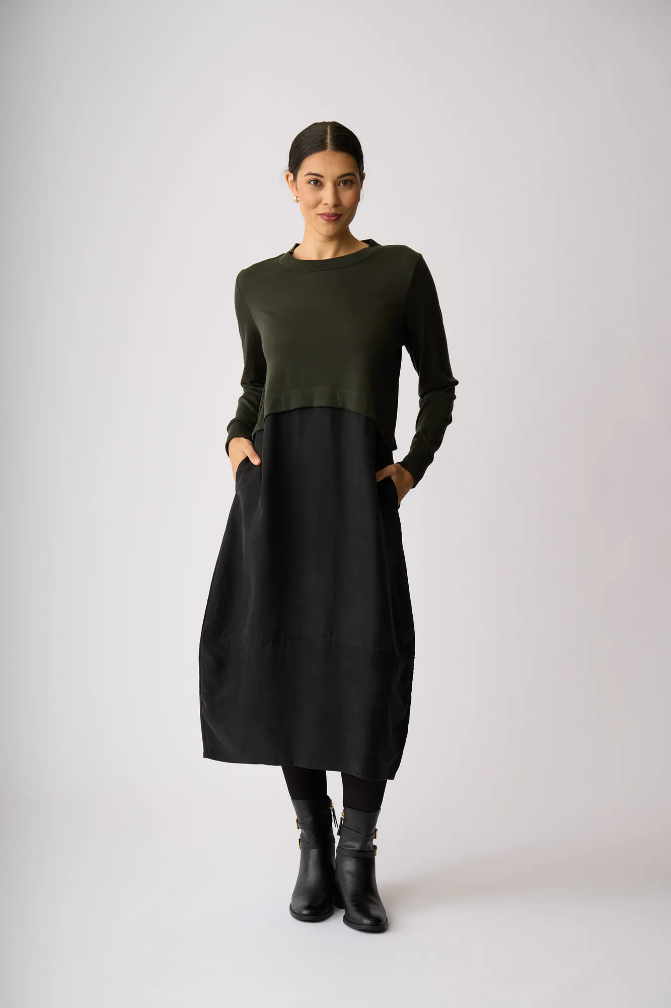 Long sleeve contrast dress