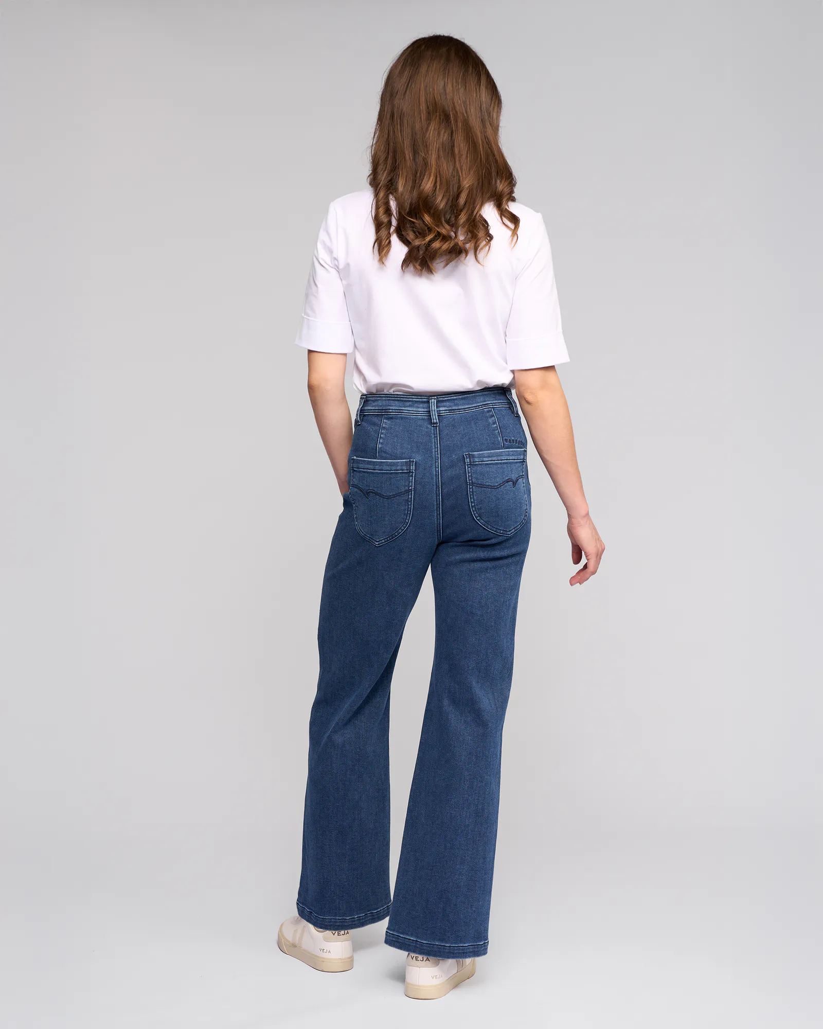 • Two back patch pockets with 'V' stitching detail
