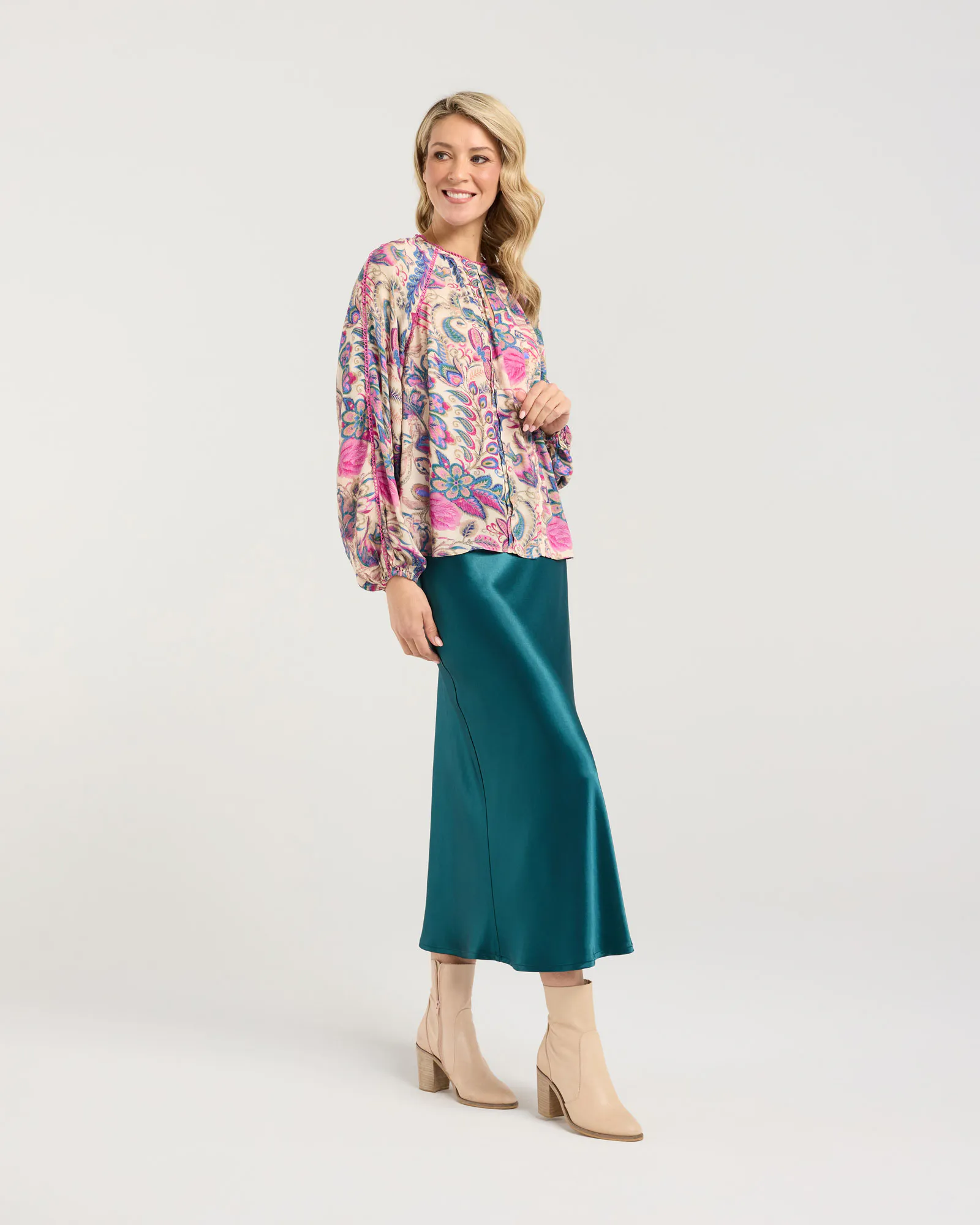 Update your winter wardrobe with the Peggy Lace Trim Raglan Top by Blackstone. With it's beautiful feminine print and lace detailing, this top is a unique blend of style and comfort, seamlessly taking you from work to an evening out.