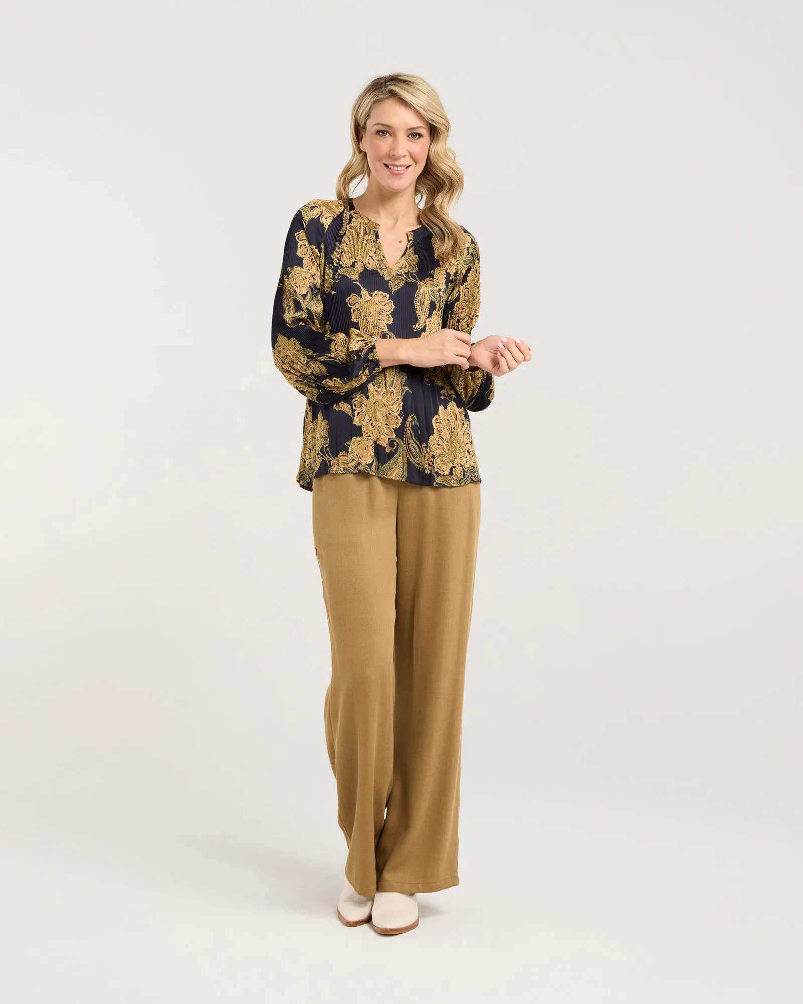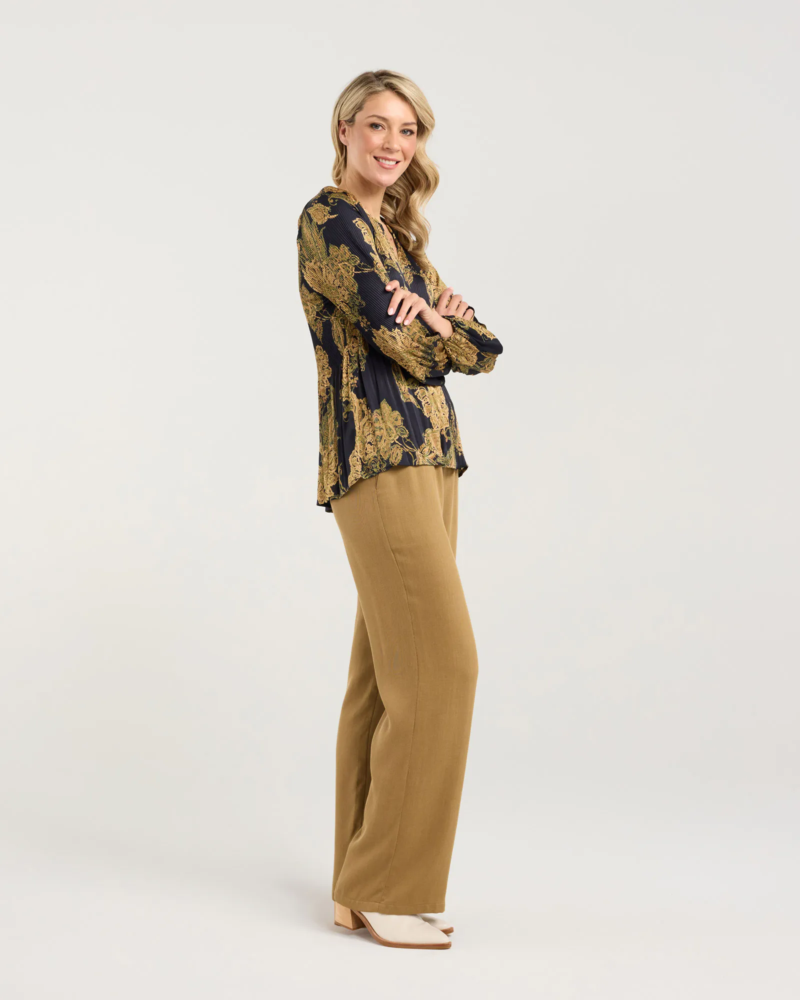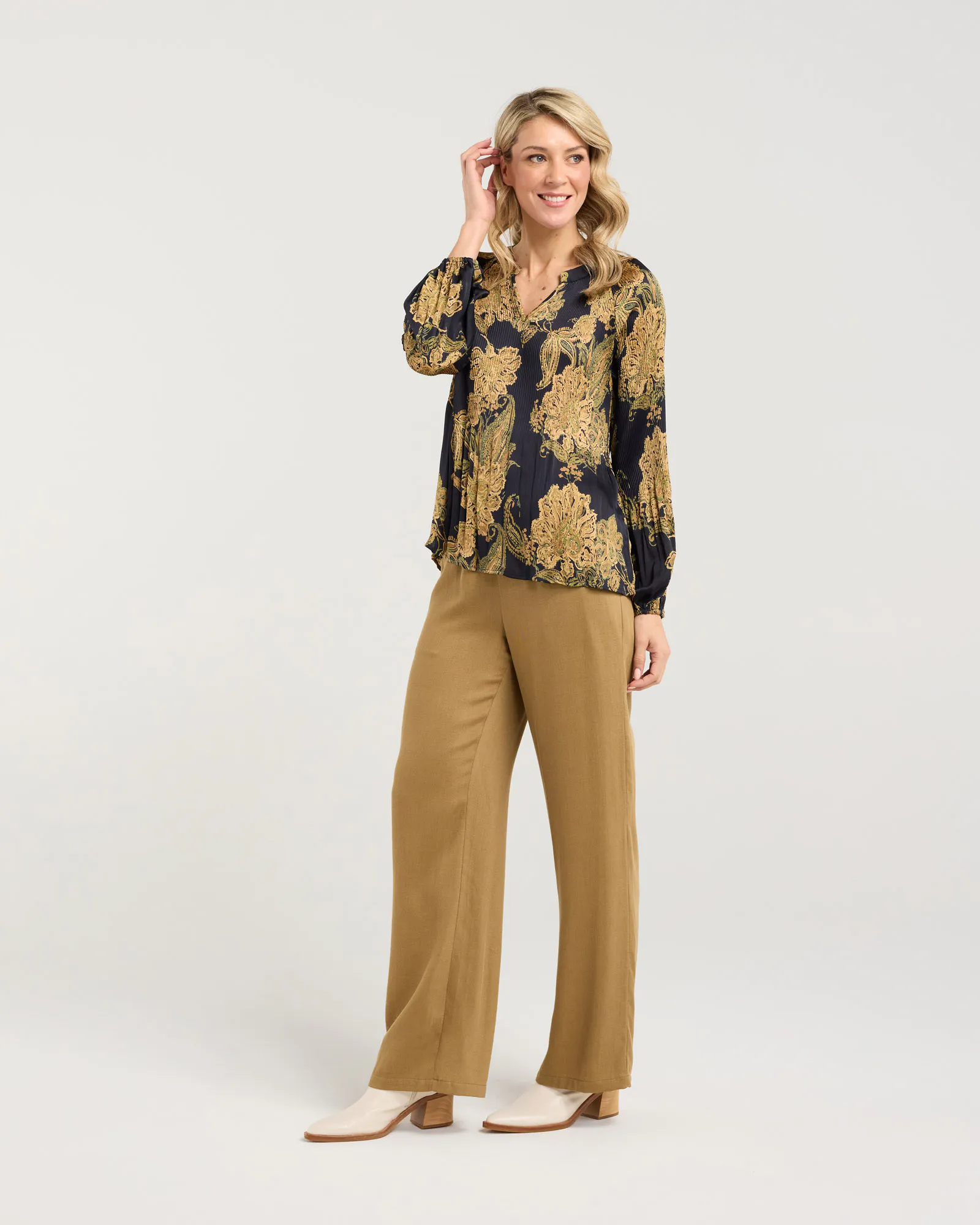 Meet the Pollyana Pleat Top from Blackstone - breezy, flattering, and full of personality. The soft pleats add instant texture and movement while keeping the silhouette looking smooth, whether you’re pairing it with jeans or dressing it up for a night out. Slip it on and let the delicate pleats do the styling for you.