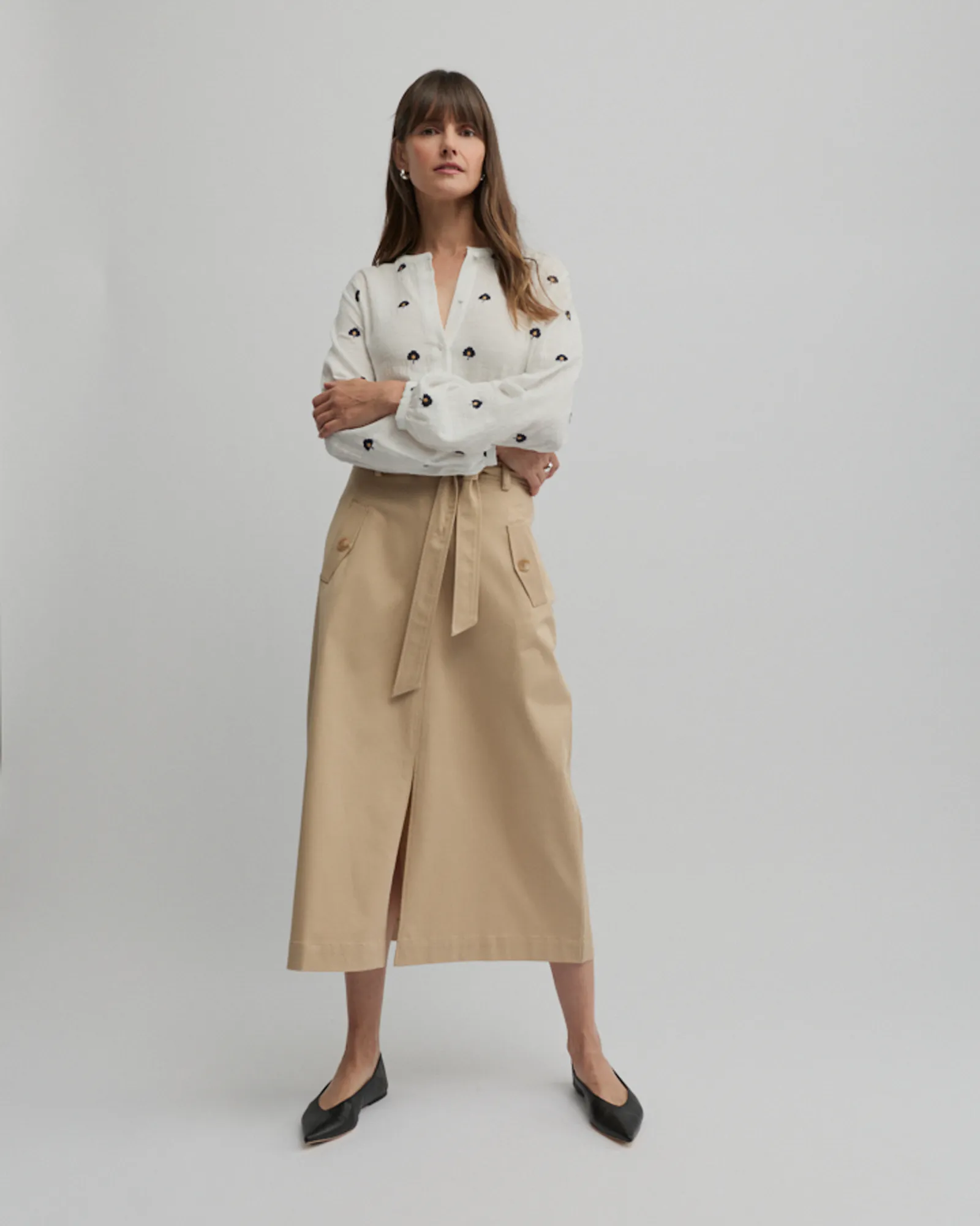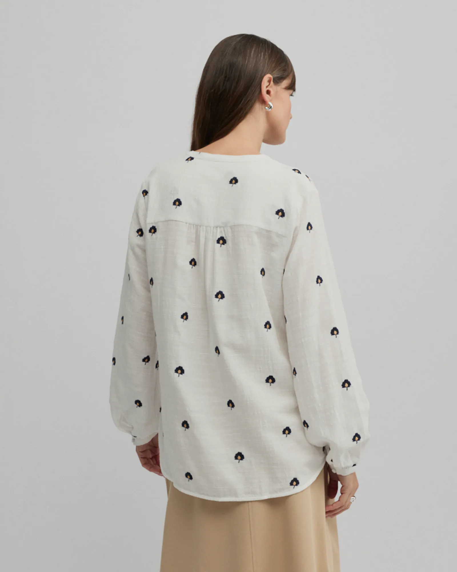 Crafted from a natural cotton-viscose blend, the Queens Shirt is a true wardrobe hero. Inspired by the chic fashion of 1960's New York, the blouse features all-over flower embroidery and and a textured cheesecloth fabric for lightweight comfort. Enhance the silhouette with a flattering skirt or tailored pants - ideal for day-to-night styling.