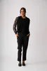 2x2 Rib along the neckline, sleeve, body hem and opening of the pocket