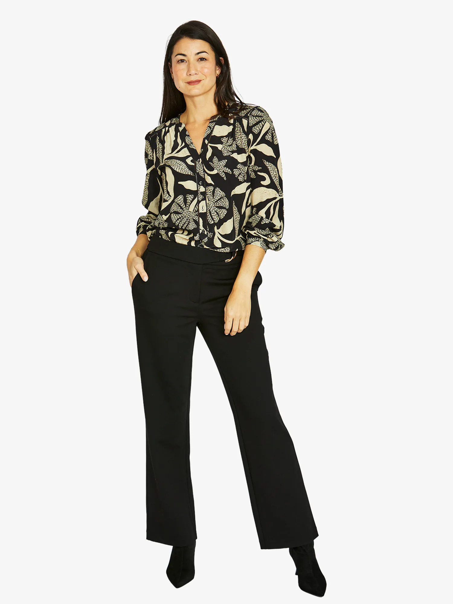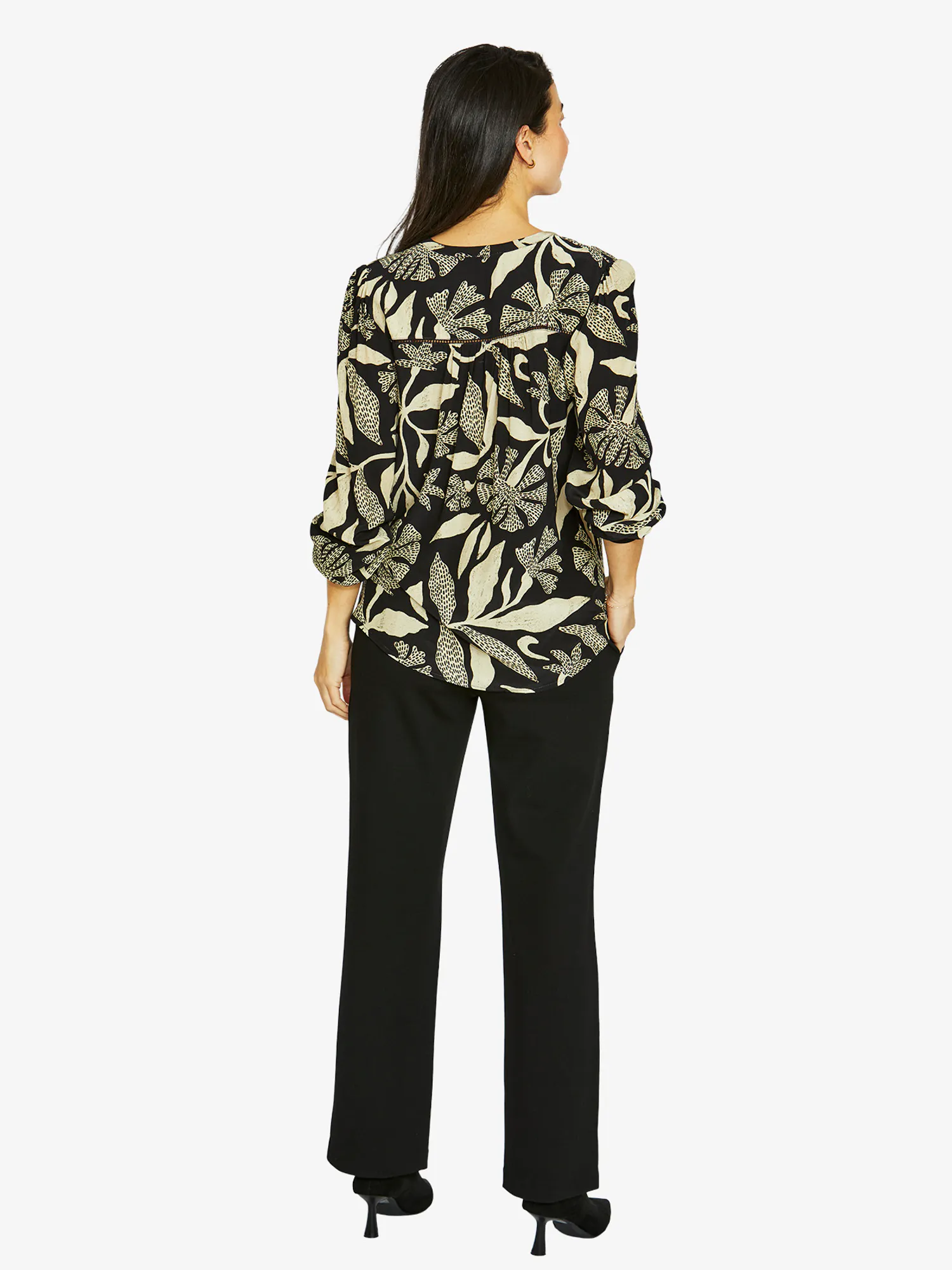 Viscose crepe blouse with faggoting detail, scandi mono print