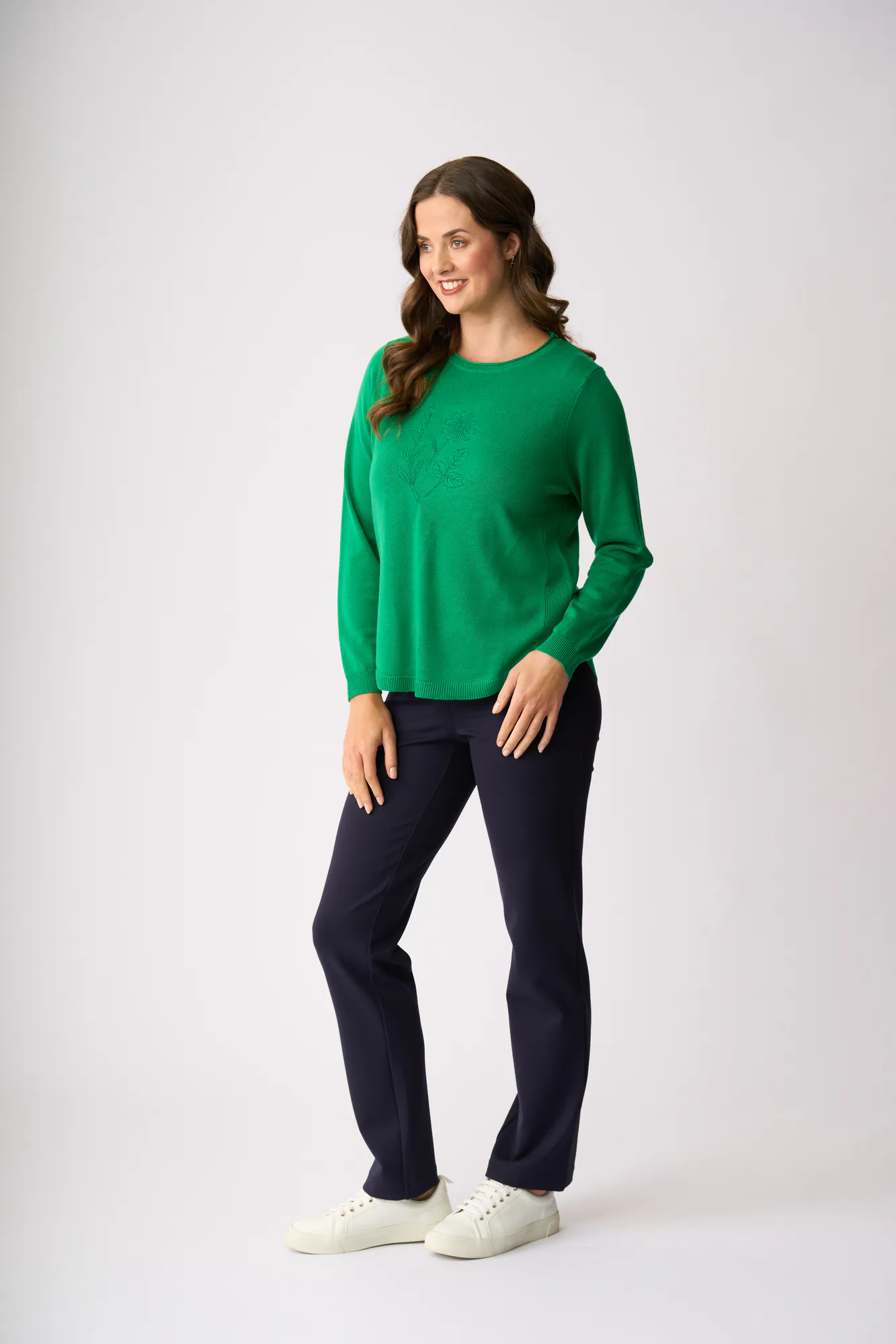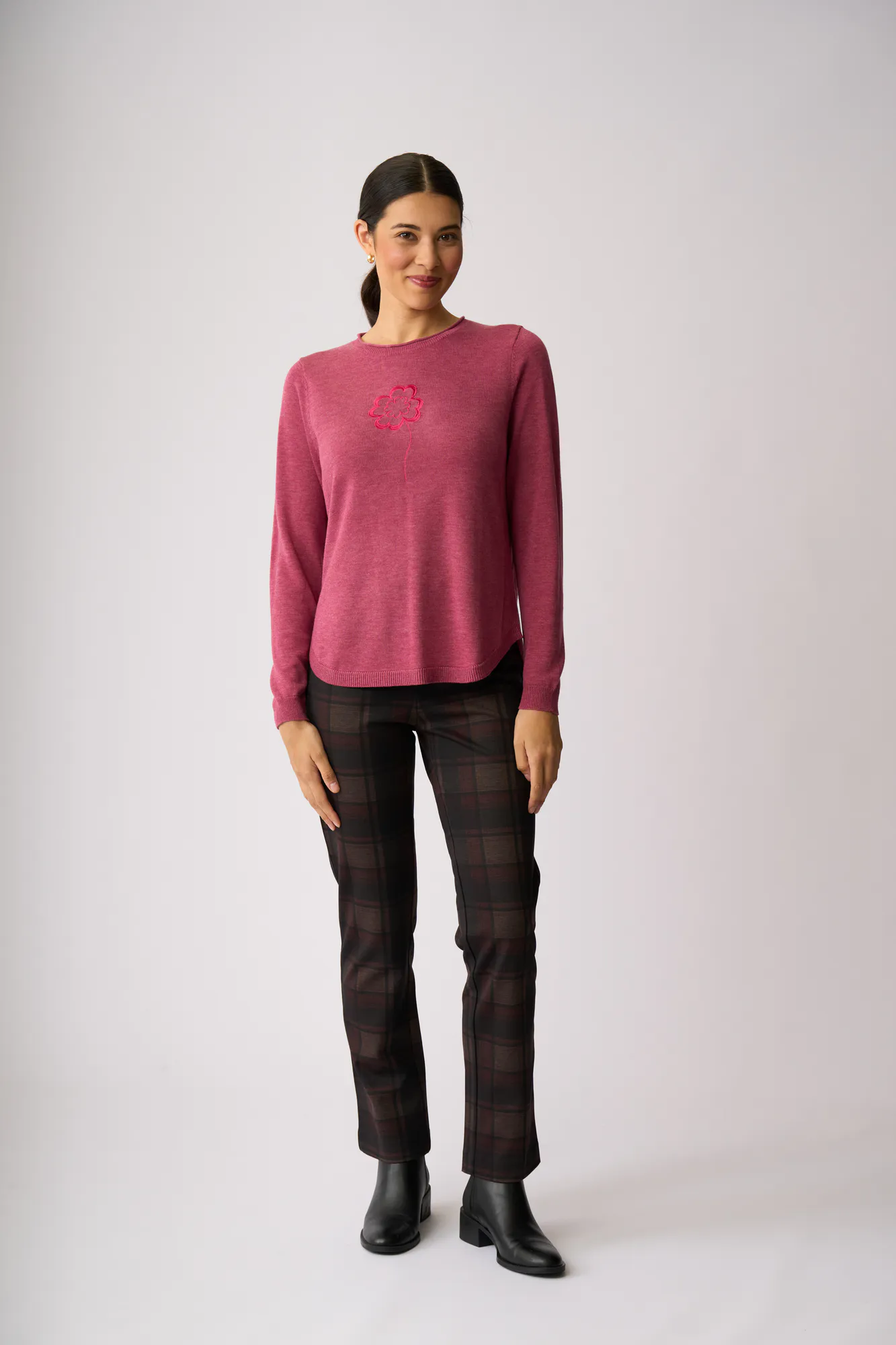 With long sleeves and a scoop neck this jumper is an easy throw on. The embroidered design on the front makes it something special.