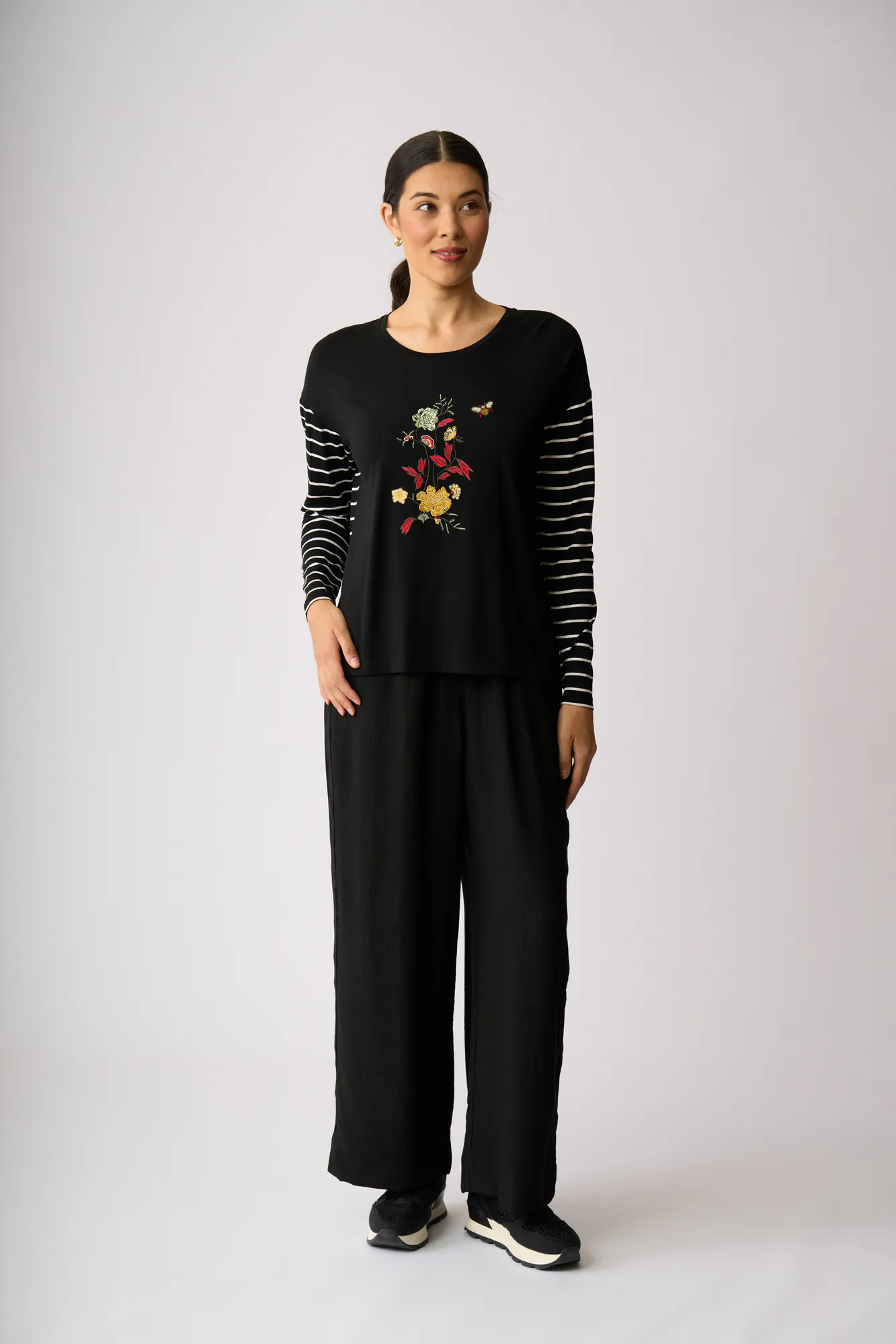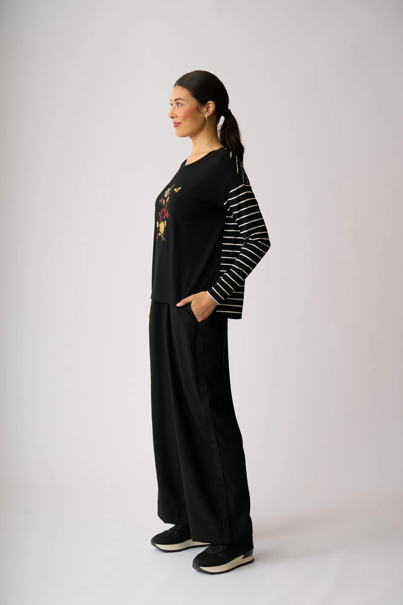 Full length and featuring a contrast textured side trim