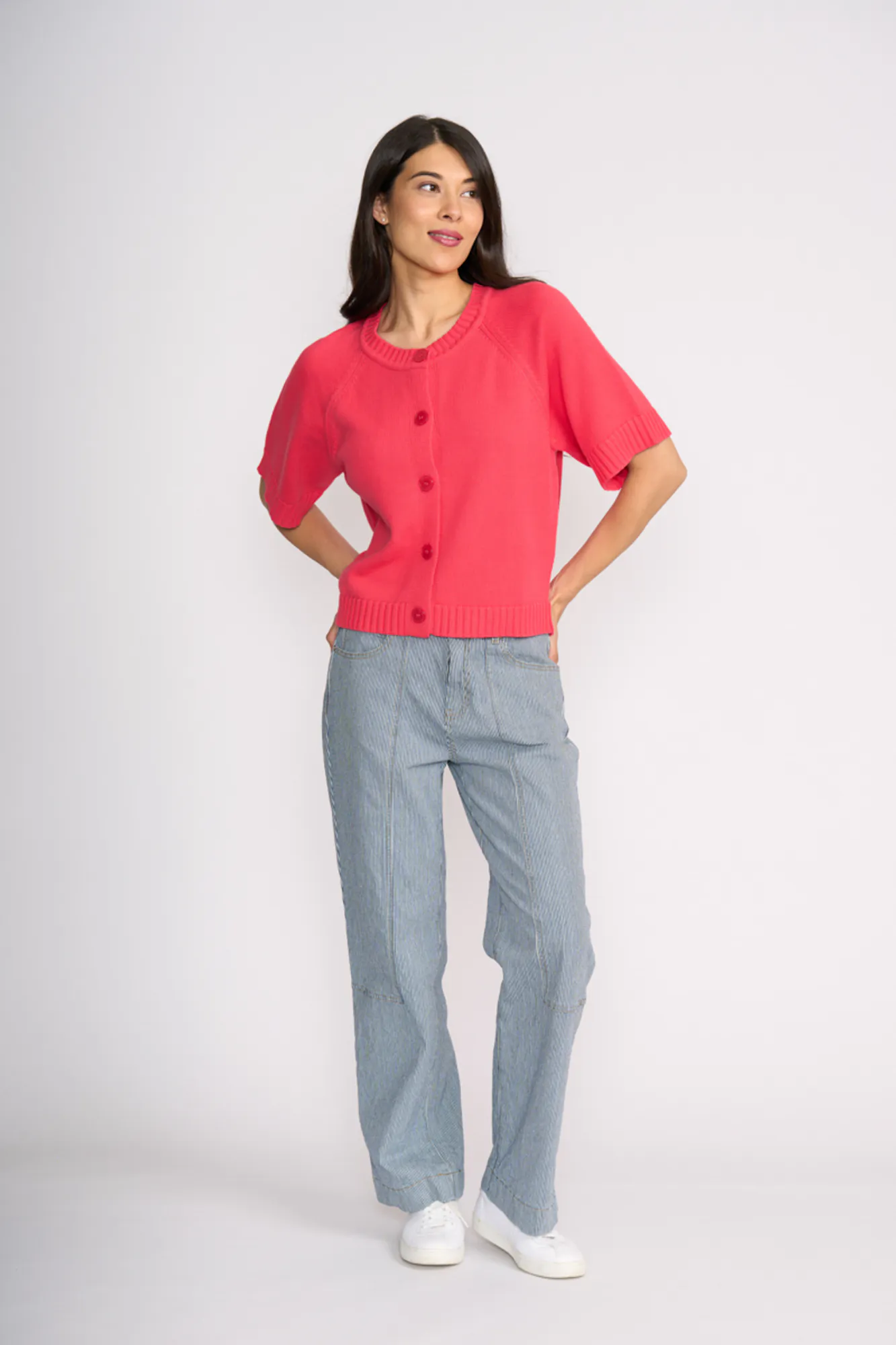 Our must have relaxed fit cardigan, designed for effortless style and comfort. Featuring a classic button closure and elbow-length sleeves. This cardigan is perfect for layering over your favorite outfits and the perfect transseasonal piece. The ribbed details add a touch of texture, while the body length of approximately 53.5cm (size small) ensures a flattering silhouette.