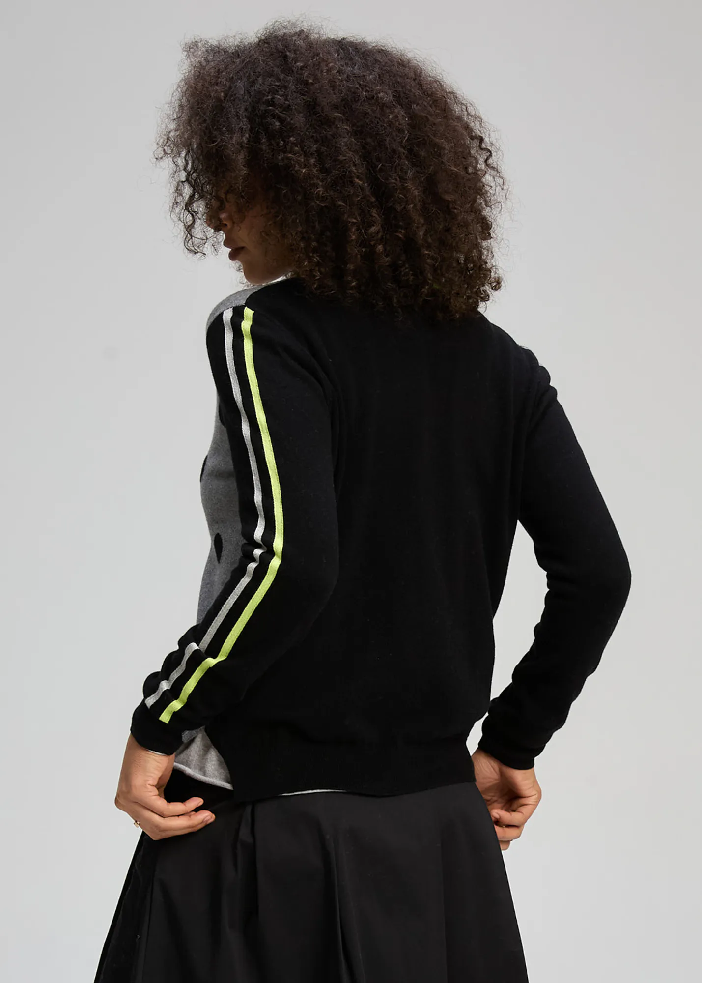 Knitted from a beautifully soft cotton–cashmere blend, it offers breathable warmth with a smooth, premium hand feel. The zip-front cardigan style makes layering effortless, while the ribbed collar and contrast stripe trim provide a polished finish.