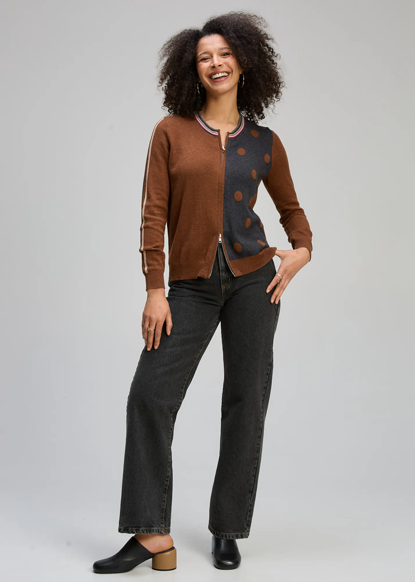 Add a playful twist to your knitwear collection with the Stripe Spot Zip Up Jumper by Zaket & Plover — a cosy yet refined piece that blends texture, pattern and everyday versatility.