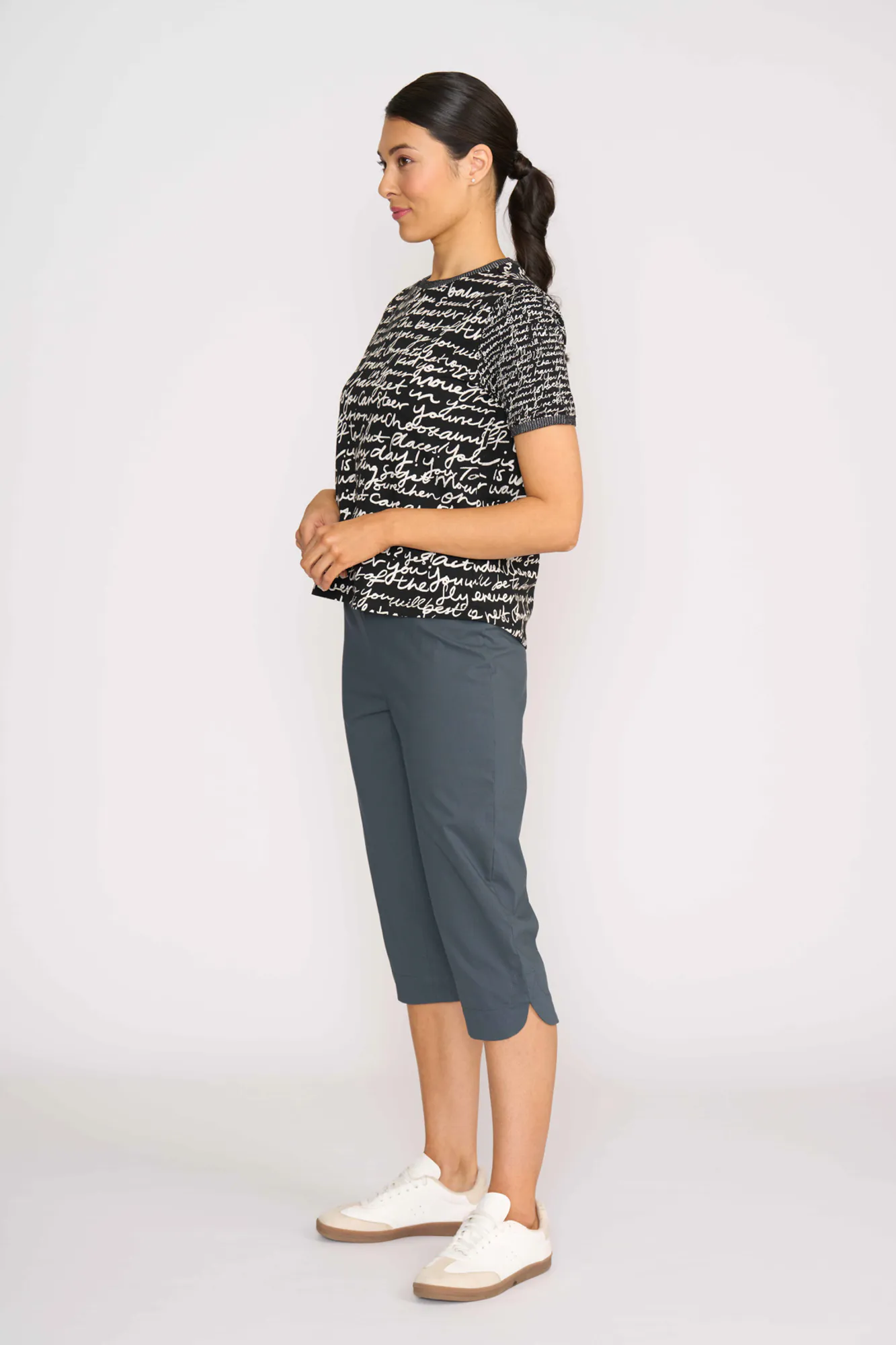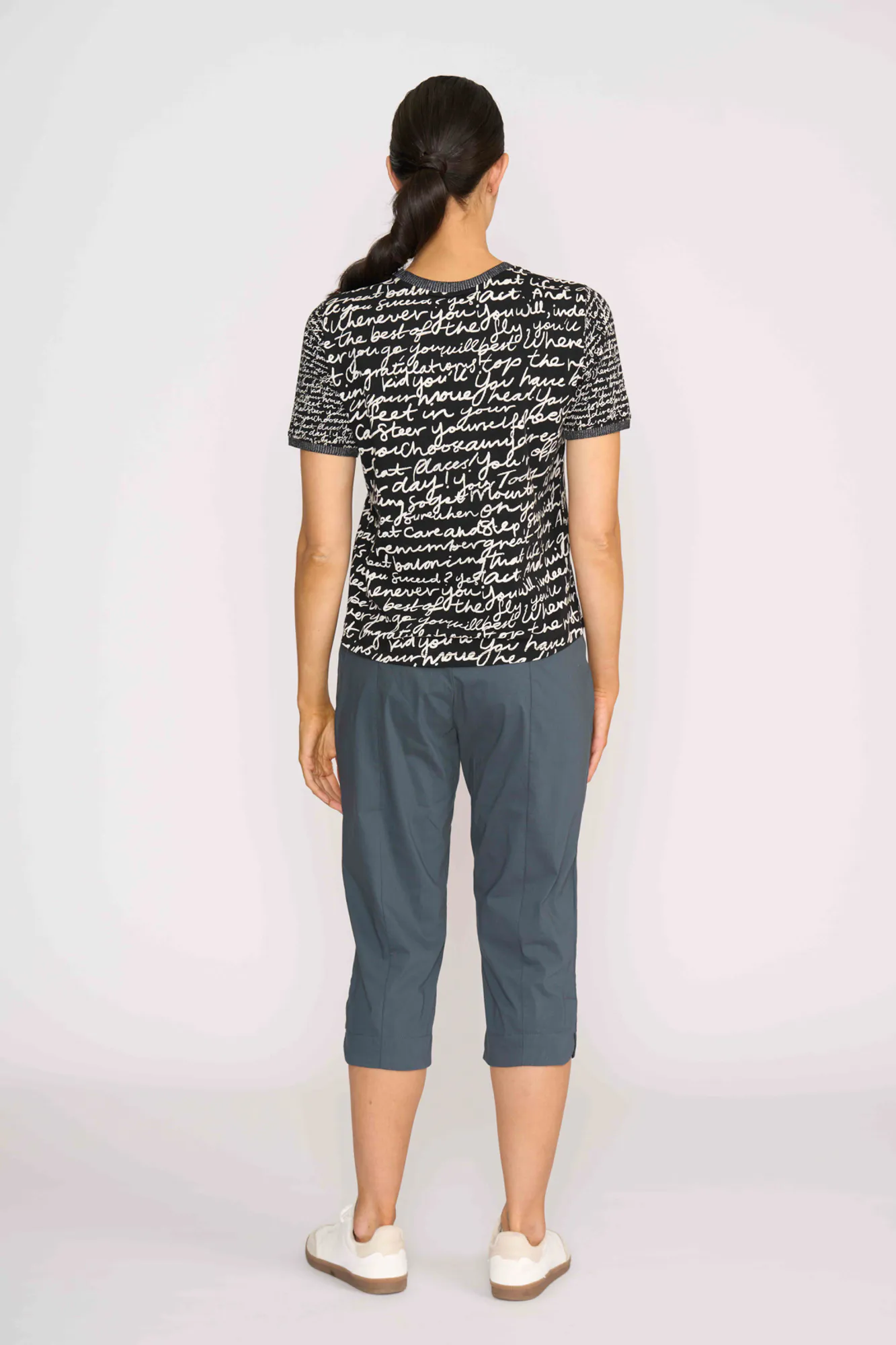 This top has all of the fun! A classic fit t-shirt with a print all over and contrast rib on the neckband and cuffs. The same print is on the body and cuffs, but at a different scale. Body length from the shoulder to the hem is approx. 60cm (size M)