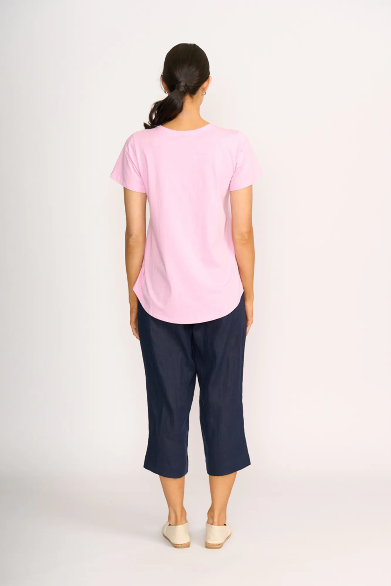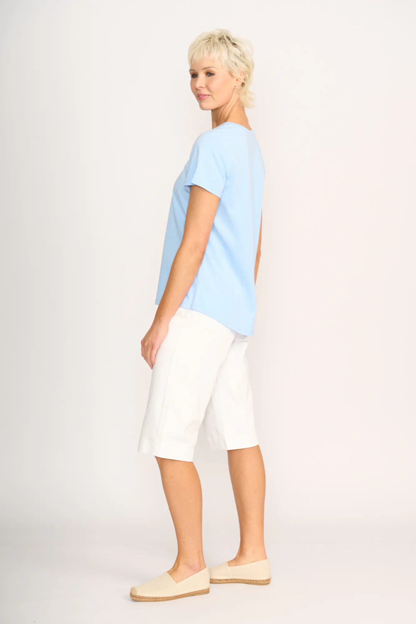 A classic t-shirt with a swing fit through the body. Scoop neckline. Short sleeves. Body length from the shoulder to the hem is approx. 62.5cm (size M)