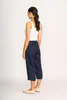 Wide leg trousers. Multi rows of stitching on the waistband with a stud & zip closure. Shaped internal front pockets. Welt pockets on the back (with the back pocket bags stitched to the body)